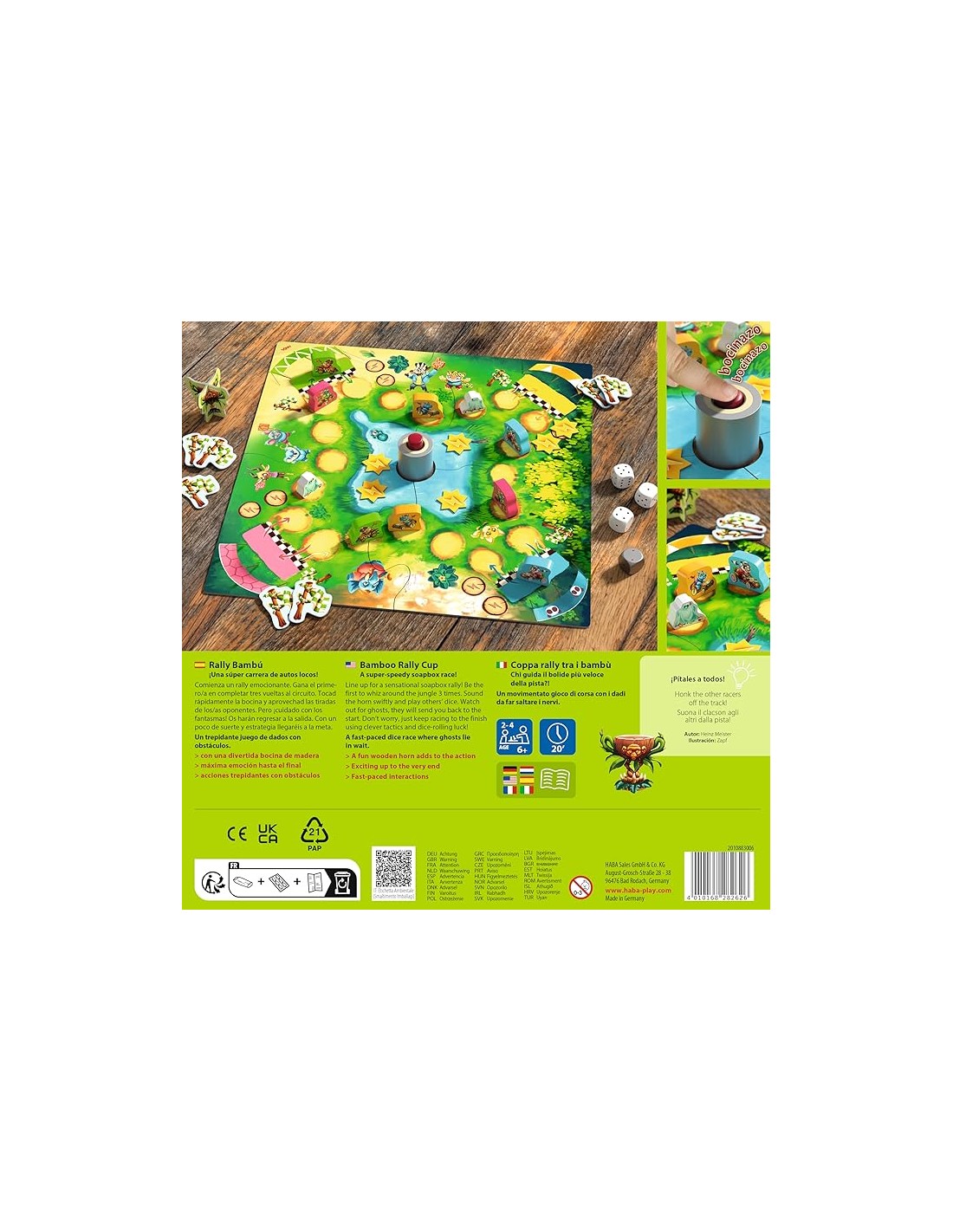 Rally Bambú es un divertidísimo juego de mesa de HABA en el que los jugadores participan en una alocada carrera de coches de bambú a través de la jungla. Cada vehículo es diferente y no todos avanzan igual… ¡ahí está la gracia! Los coches más lentos pueden ganar velocidad en los descensos y dar la sorpresa en el último momento.