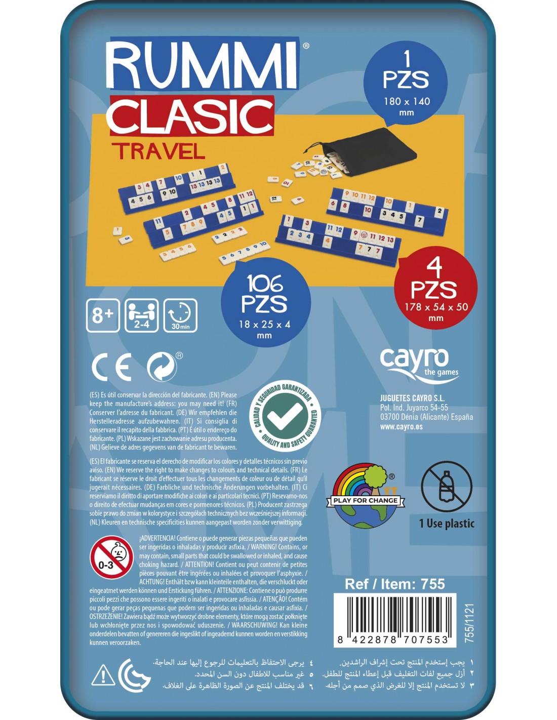 Rummiclasic Travel es la versión compacta del famoso juego de combinaciones y secuencias numéricas que nunca pasa de moda. Gracias a su práctica caja metálica, es ideal para llevar de vacaciones, escapadas, fines de semana o simplemente tener siempre a mano.