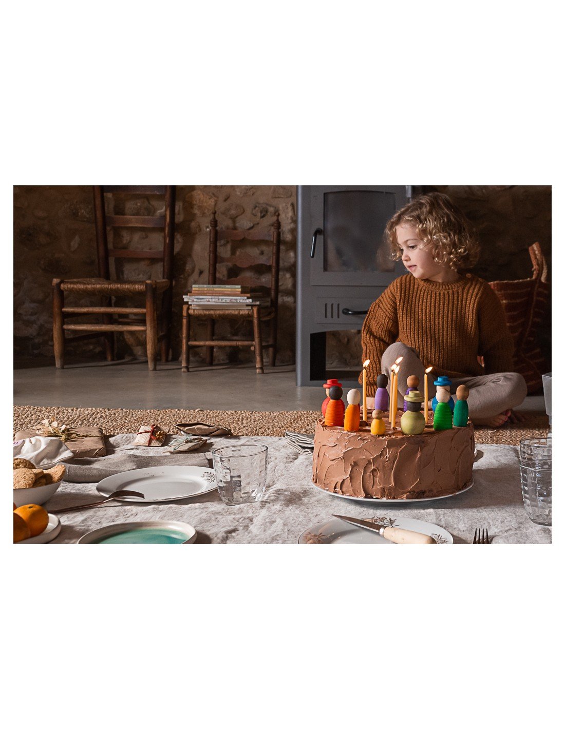 12 Nins en 3 tonos de piel: 3 Nins estrechos, 3 Nins anchos , 3 Nins rayados, 3 Nins bebés, incluye bolsa de tela.