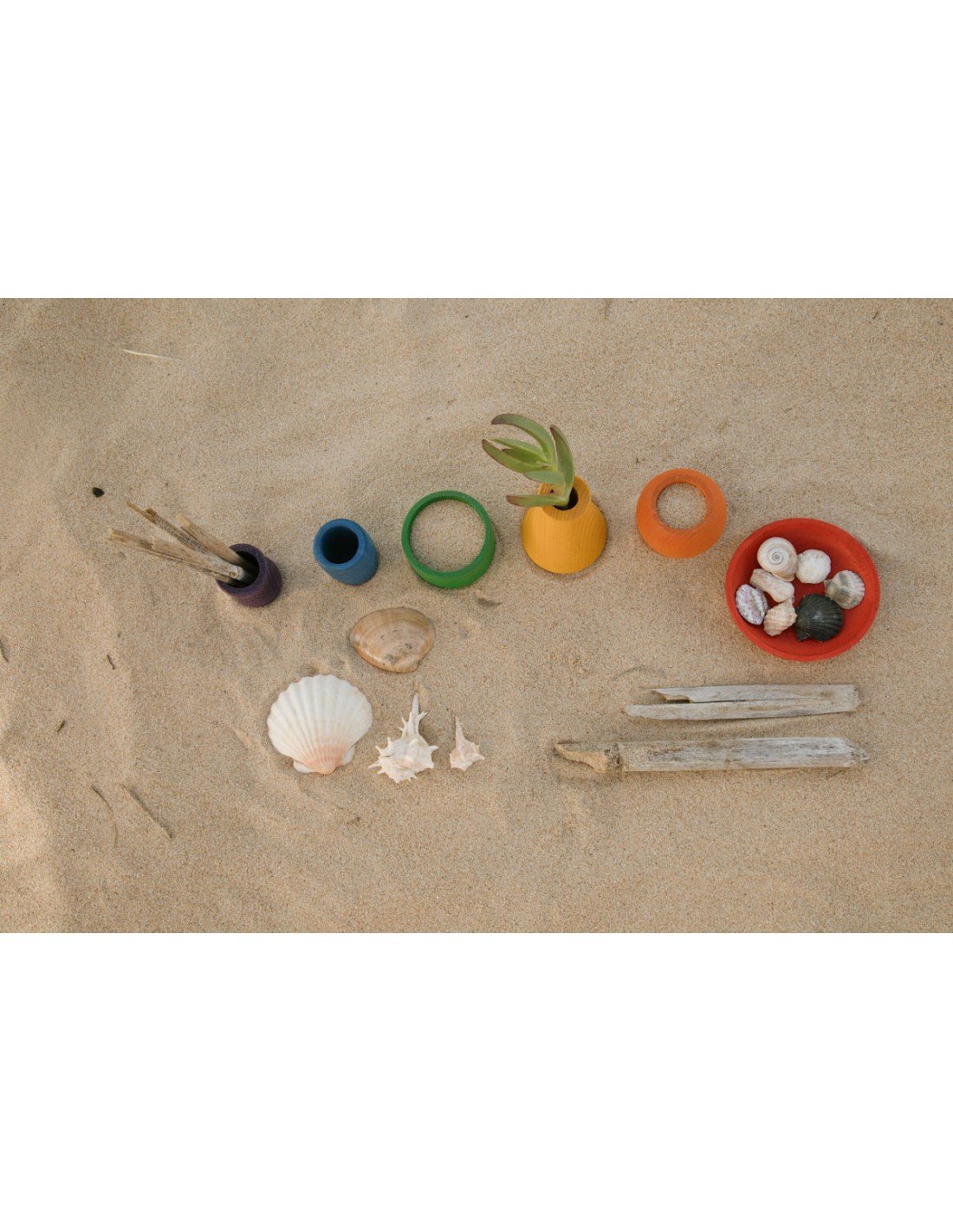 Este set contiene 6 recipientes de diferentes colores, tamaños, volúmenes y formas. Son perfectos para fomentar el desarrollo sensorial.