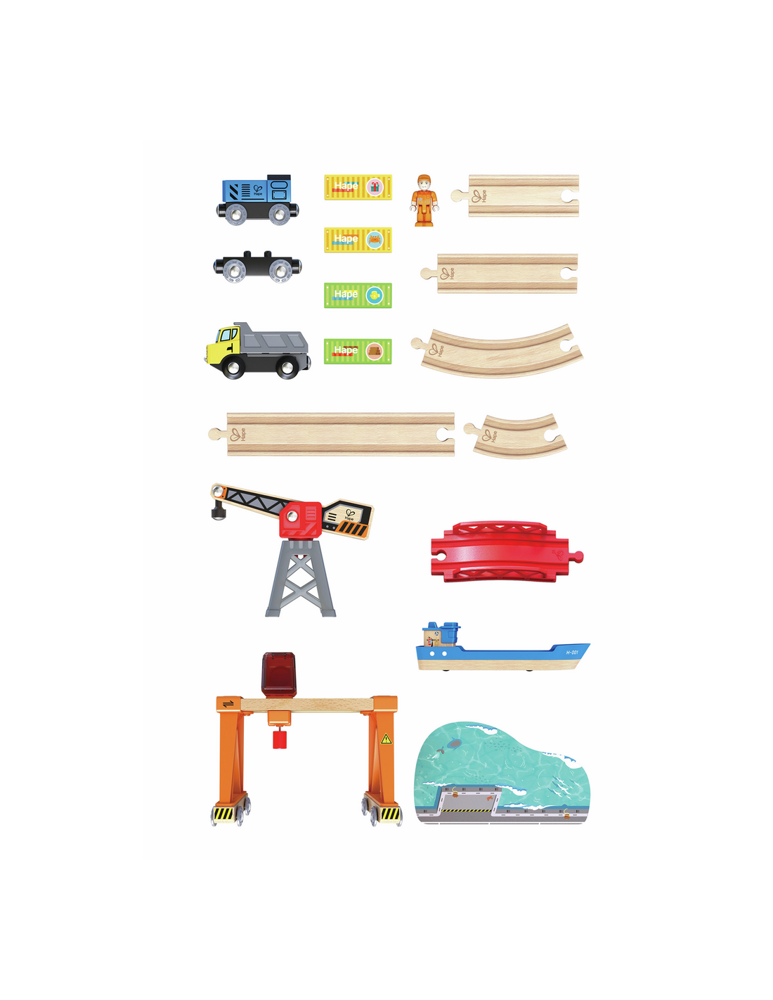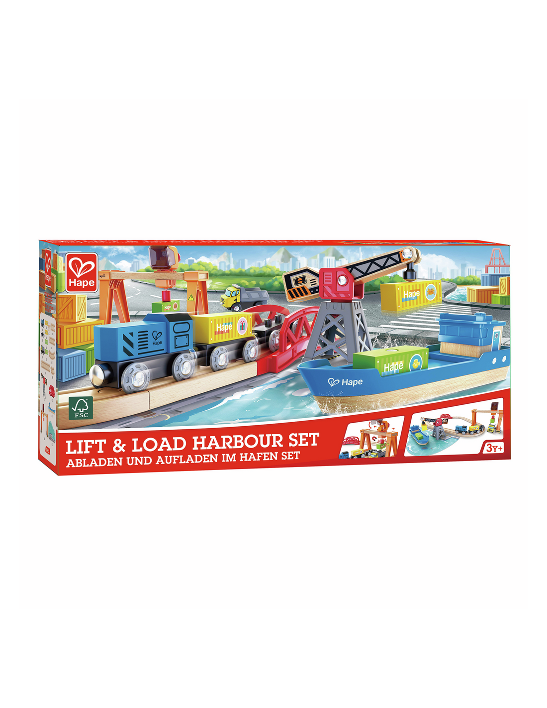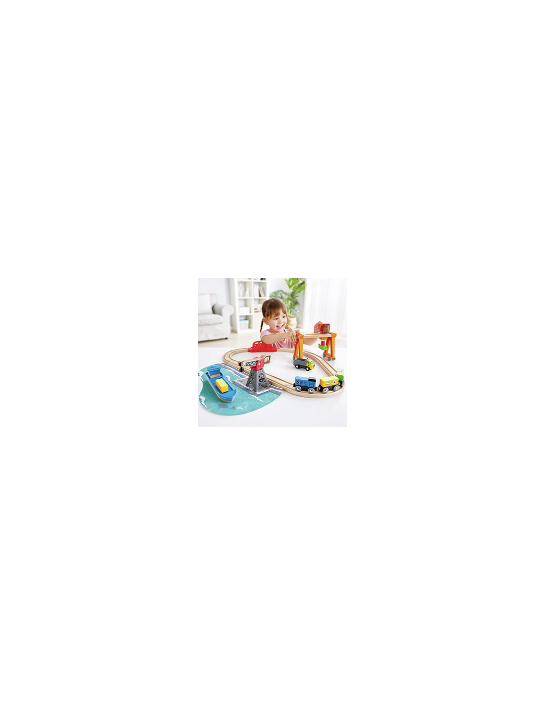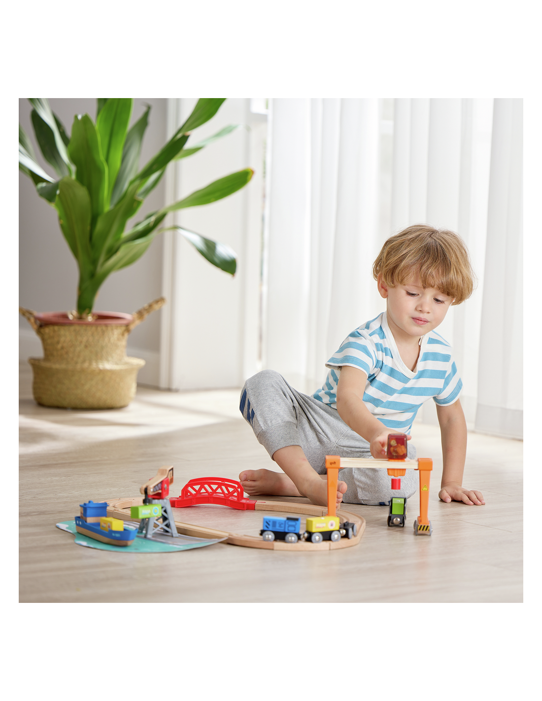 Ya es hora de descargar la carga que ha viajado a lo largo de los mares. Con el equipo del puerto de elevación y carga, tu hijo pequeño experimentará toda la emoción de poder saber qué sucede en el puerto. Podrá mover la grúa para cargar toda la carga del barco al tren y viceversa.
