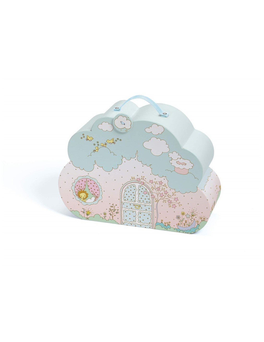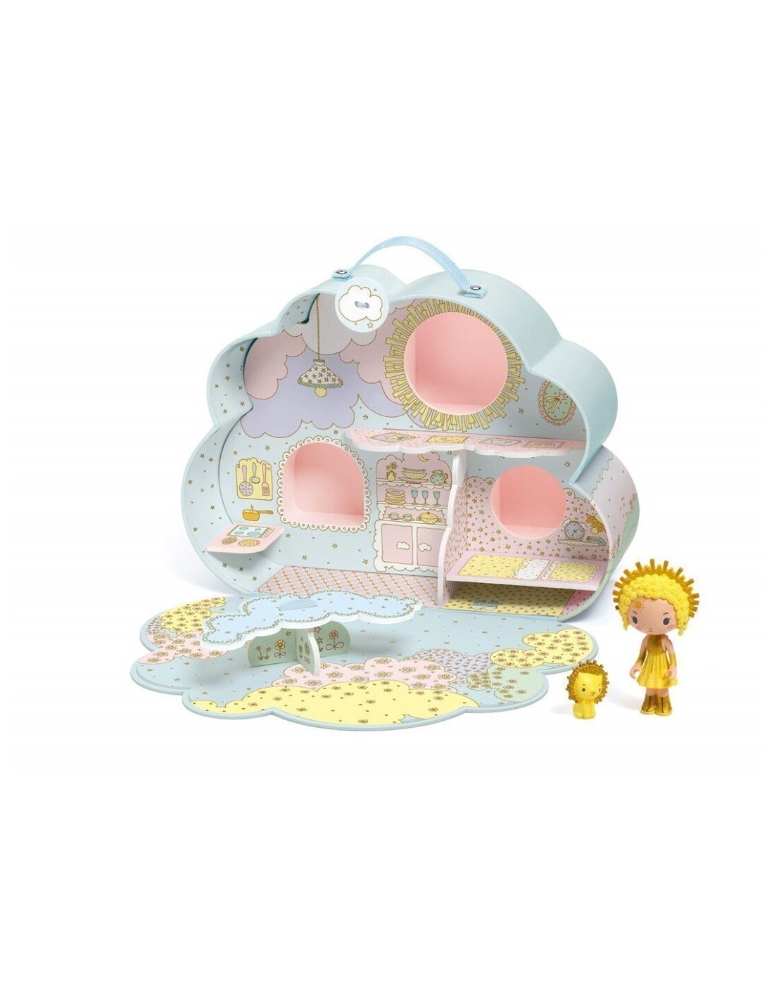 La casa de la resplandeciente pareja formada por Sunny y Mia es una adorable maleta en forma de nube con tiernas ilustraciones. Al abrirla, puedes descubrir una decoración de casa de muñecas: un dormitorio, una cocina y una mesa de comedor. ¡Para sentirse como en una nube!