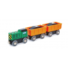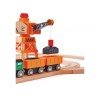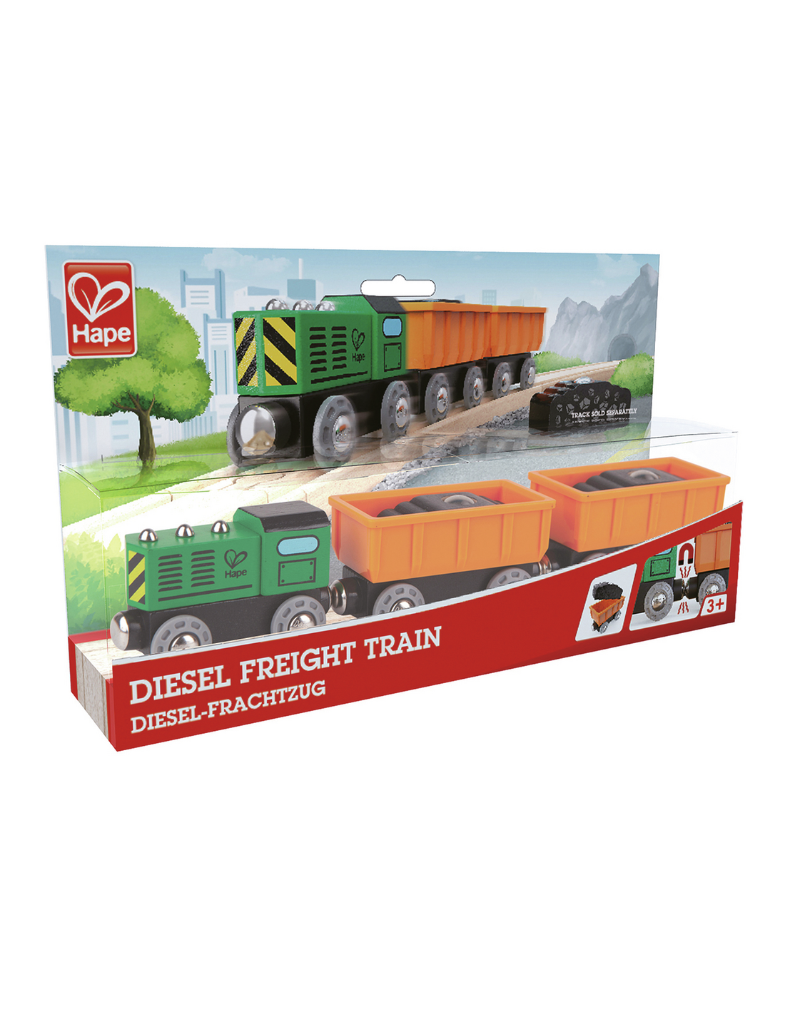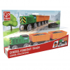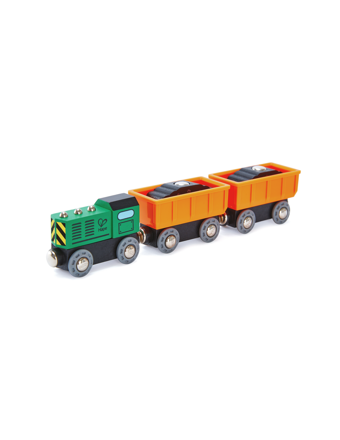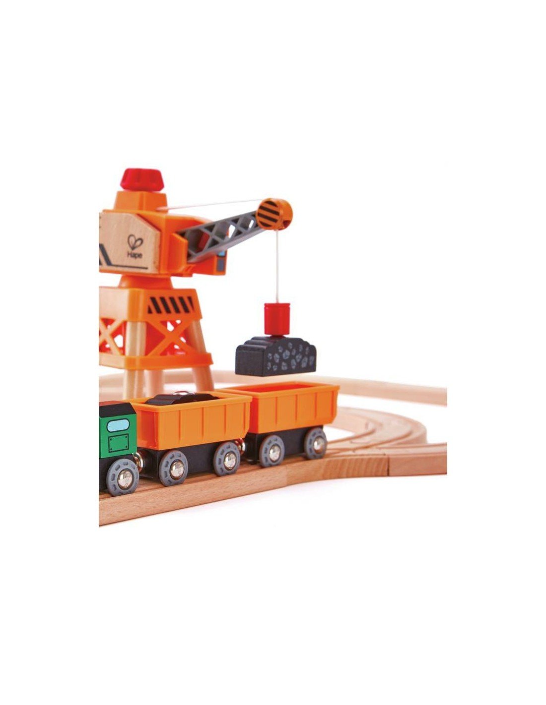 ¡Empuja este tren de mercancías diésel por las vías para transportar la carga hasta el mercado! Los vagones del tren de mercancías están cargados con bloques de mineral de hierro que pueden ser recogidos por las grúas magnéticas de Hape.