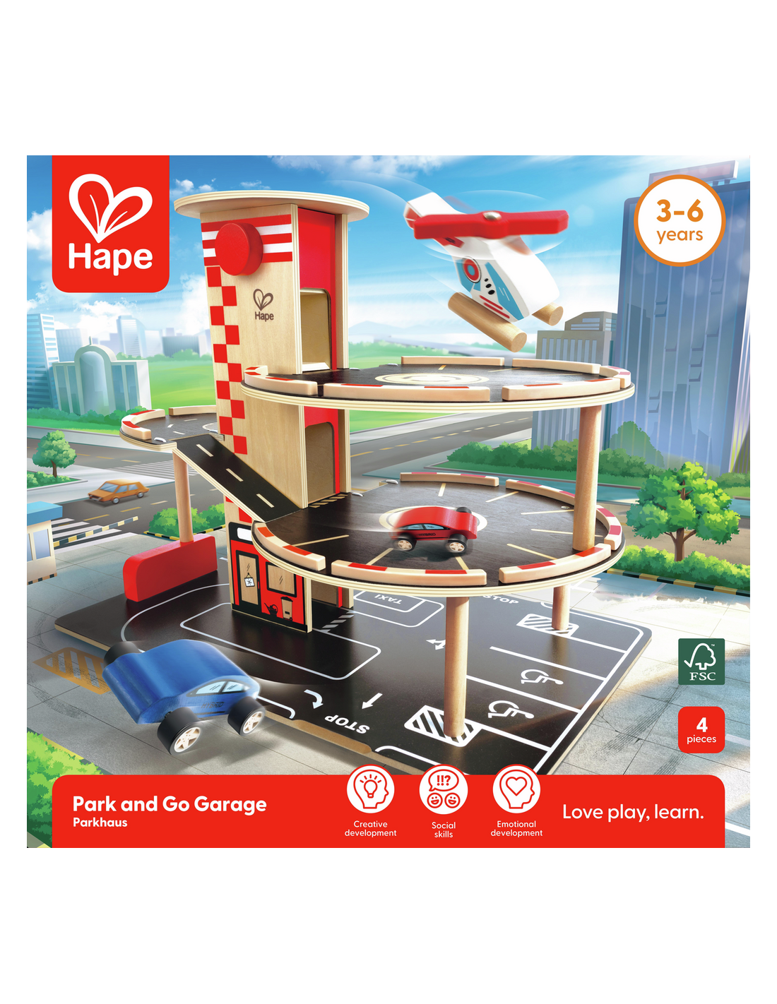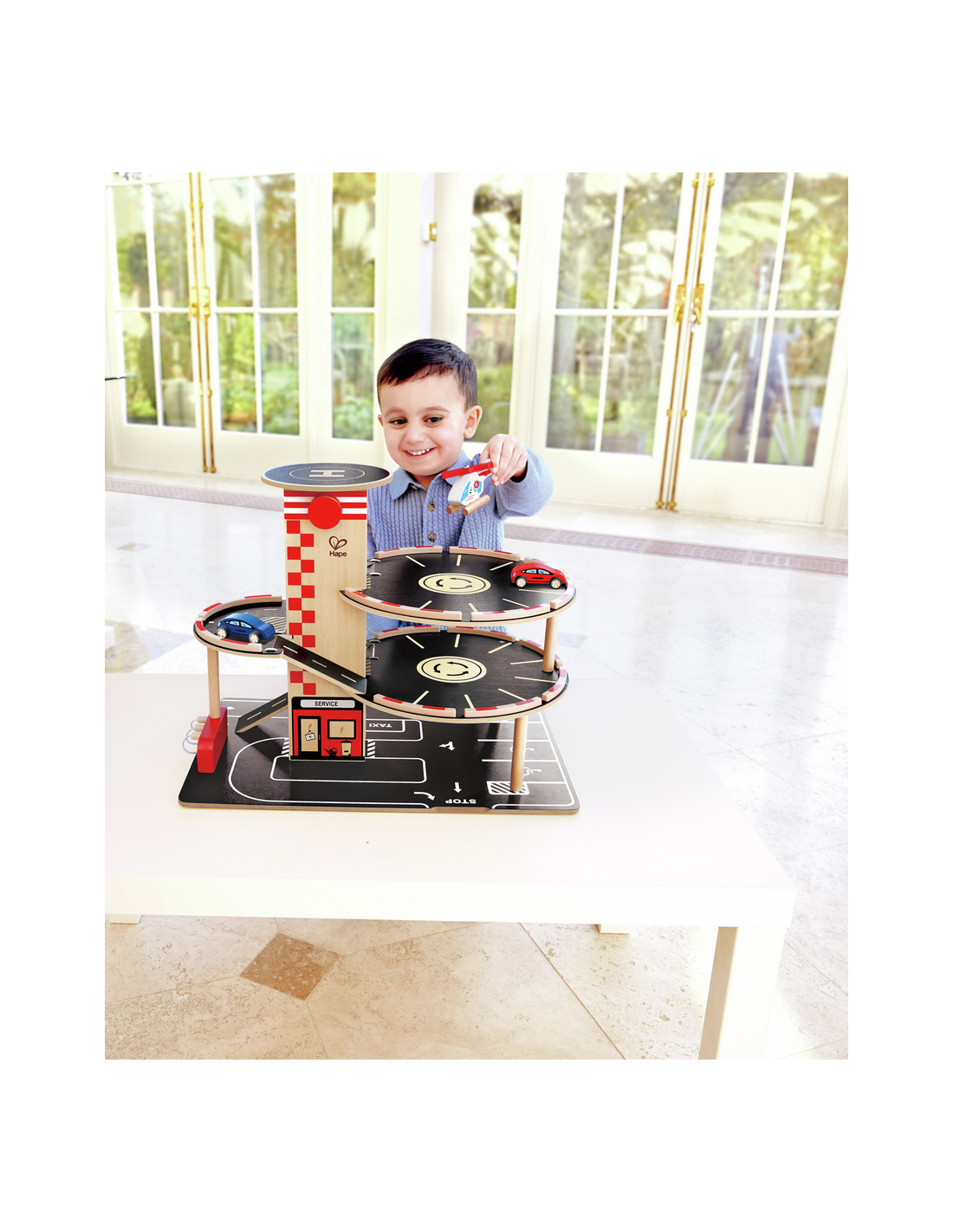 Diferentes niveles llenos de diversión. Este Parking es el regalo perfecto para ocasiones especiales con el que los niños y niñas pasarán las horas jugando solos o con sus amigos y amigas. Este set para coches de juguete ofrece miles de formas diferentes de jugar como, por ejemplo, conducir y aparcar los coches de juguete en los de cuatro niveles del aparcamiento, poner gasolina después de sus largos viajes, hacer que suban y bajen por el ascensor o incluso que se vayan volando con el helicóptero de juguete.