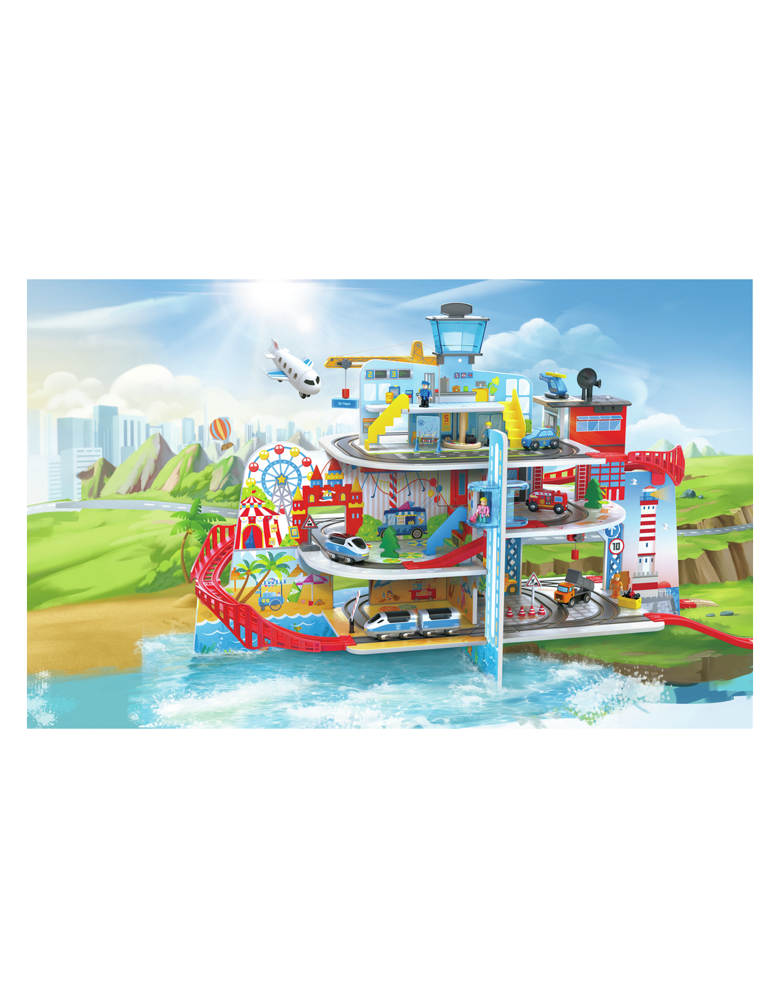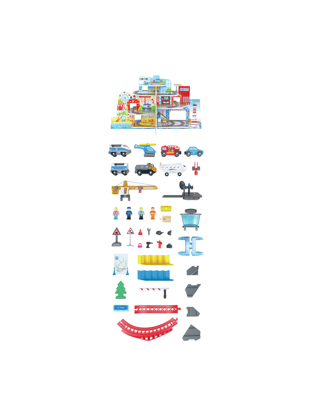 ¡Envíe su tren para un viaje fantástico por esta maravillosa ciudad! ¡Este juego de cinco capas incluye una gran cantidad de accesorios para convertir el tiempo de juego en una verdadera aventura!