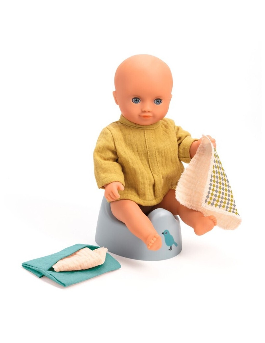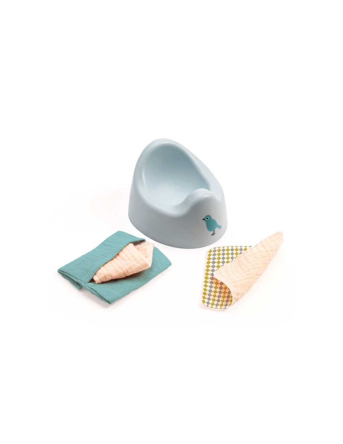Completa el cuidado de tu muñeca Pomea con este tierno set de accesorios pensado para los más pequeños. Incluye un orinal de plástico resistente, dos suaves toallitas de gasa de algodón y una práctica bolsita para guardarlas, todo en un tamaño ideal para manos infantiles.