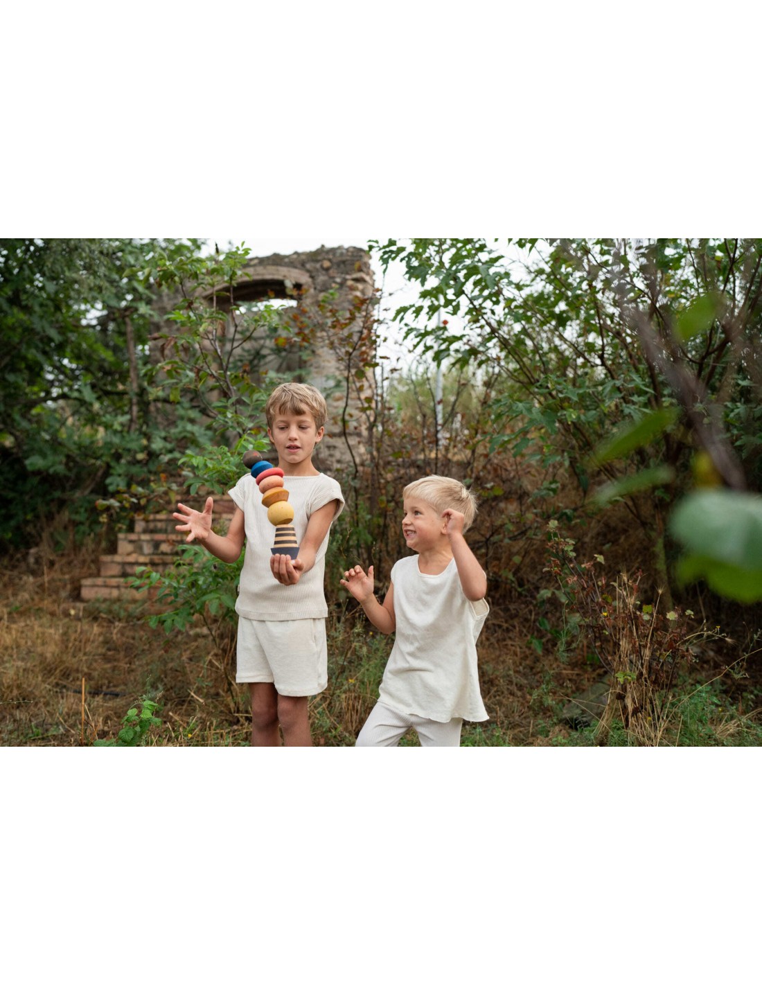 ¡Infinitas combinaciones para esta torre apilable! Llena de color y bellamente hecha a mano, cada movimiento es divertido. ¿Has visto sus ojitos? ¡Crea caras y personajes!