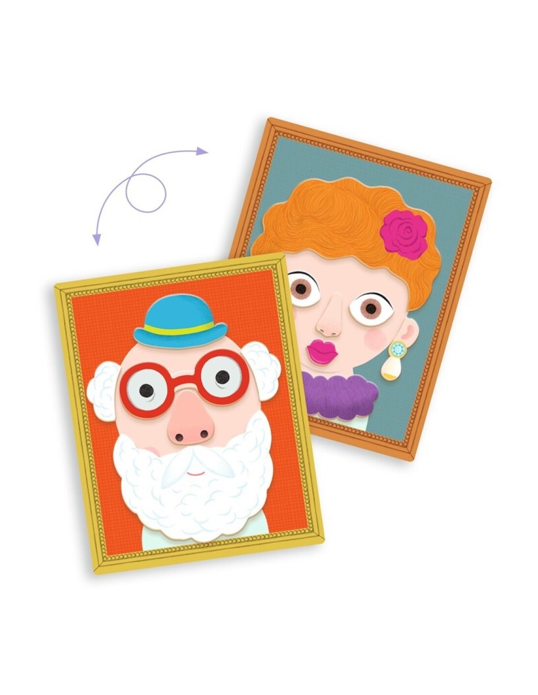 Un pequeño estuche repleto de imaginación y arte en miniatura. Este juego magnético de Djeco invita a niños y niñas a crear retratos únicos combinando imanes de madera sobre una caja metálica ilustrada por sus dos caras