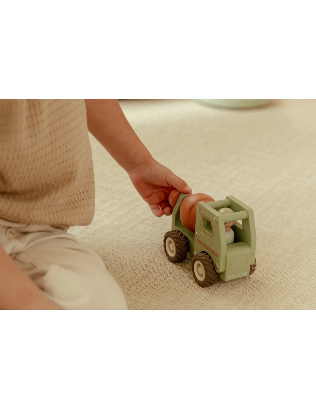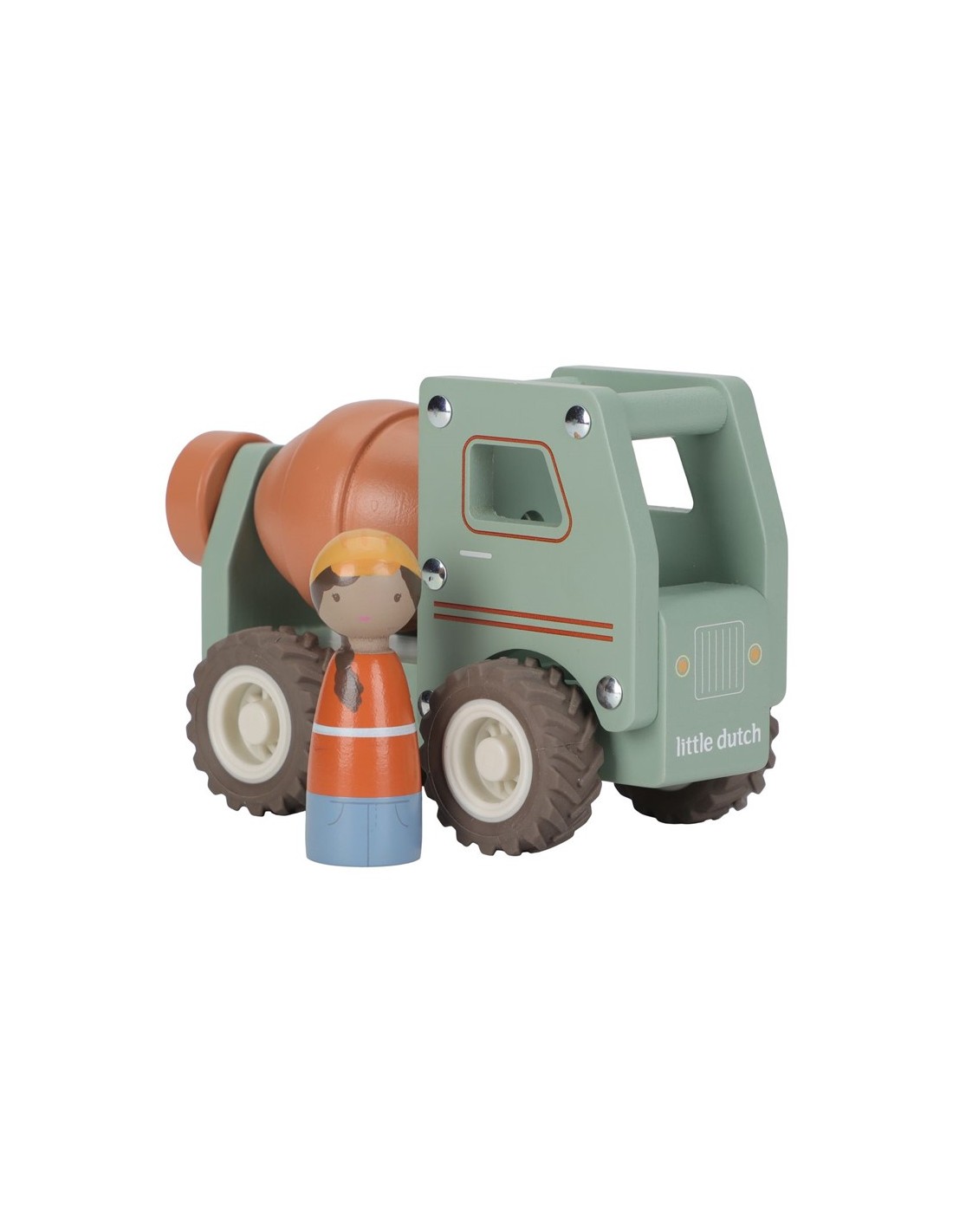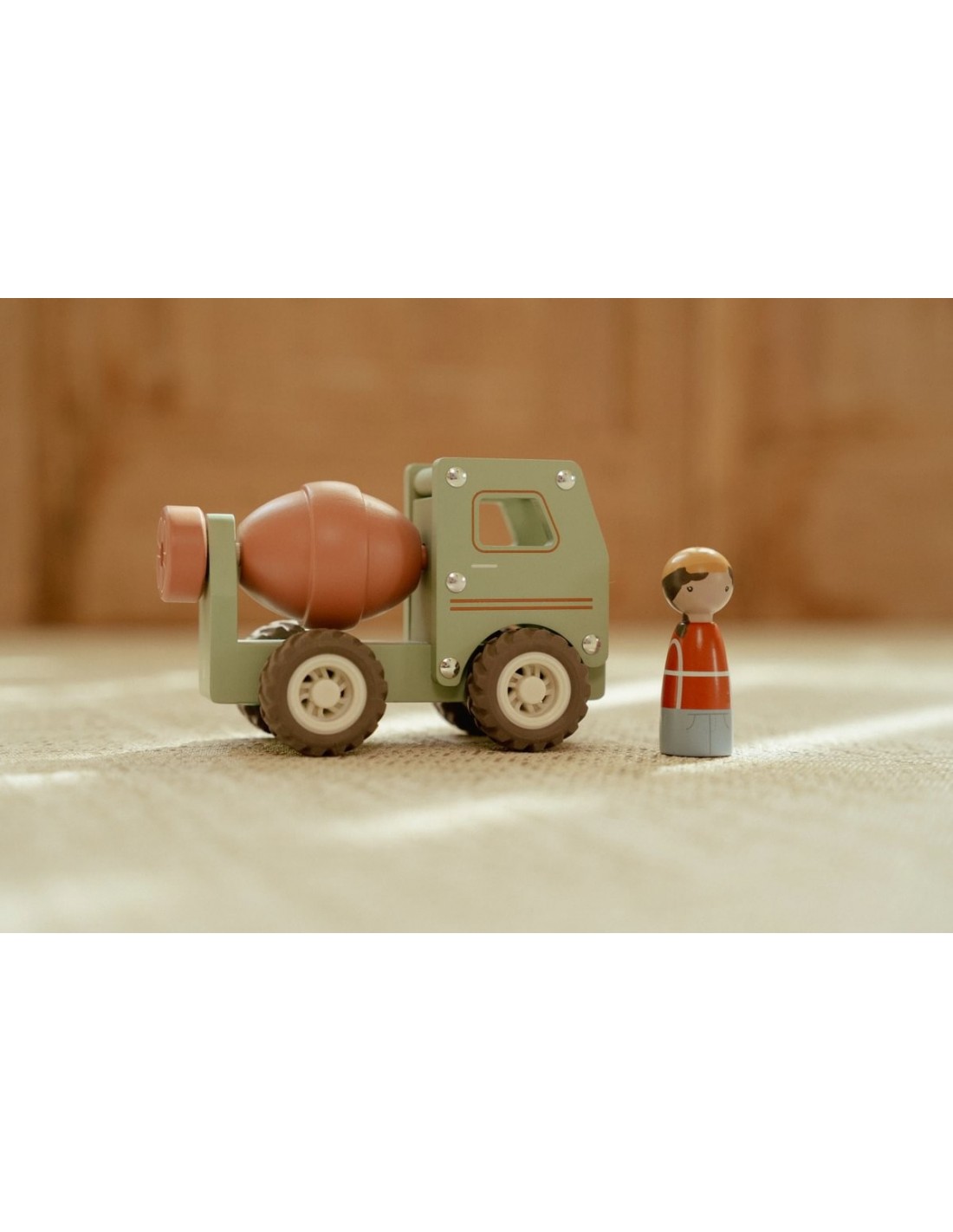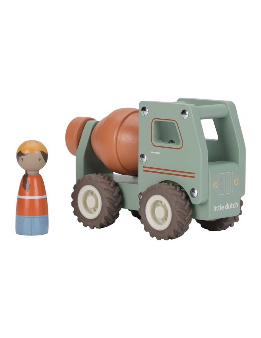 ¡Mezcla y construye! Este camión de cemento de madera gira su mezcladora mientras recorre la obra. La minihormigonera incluye un trabajador de construcción de madera y ruedas de goma para mayor comodidad al conducir. Conduce hasta la obra, vierte el hormigón y allana los caminos por completo. Combínalo con la excavadora y el camión dúmper de madera para una experiencia de construcción completa.