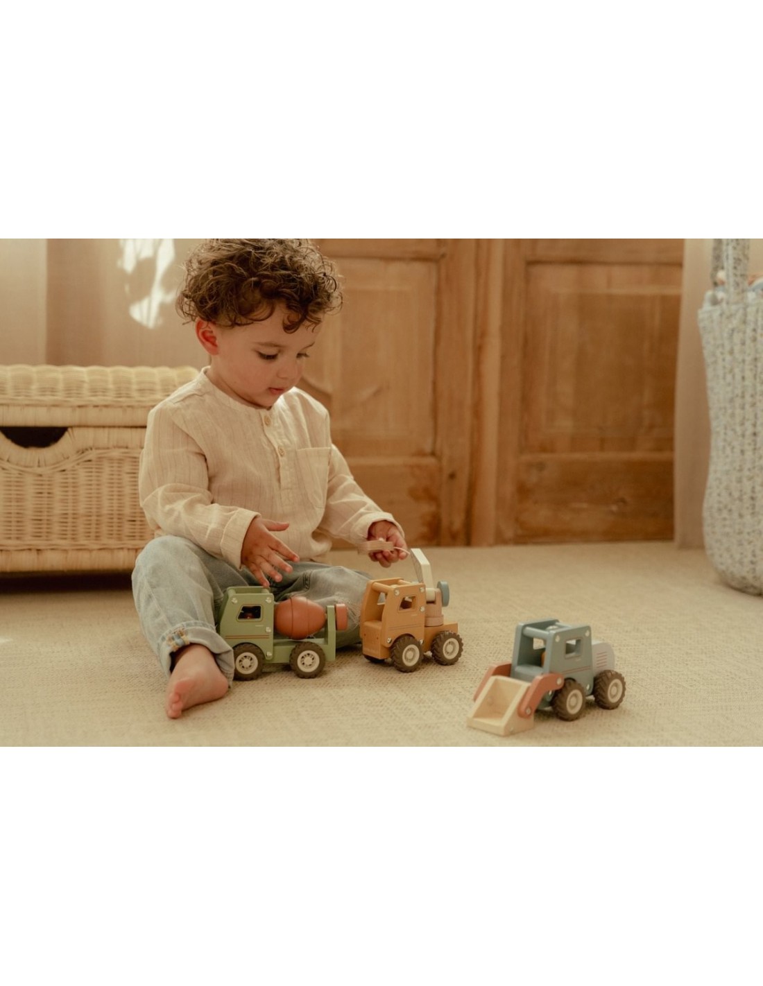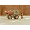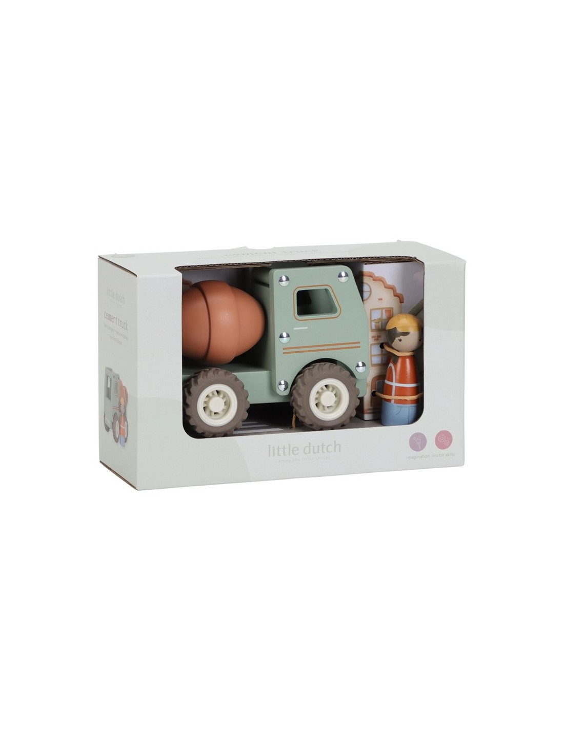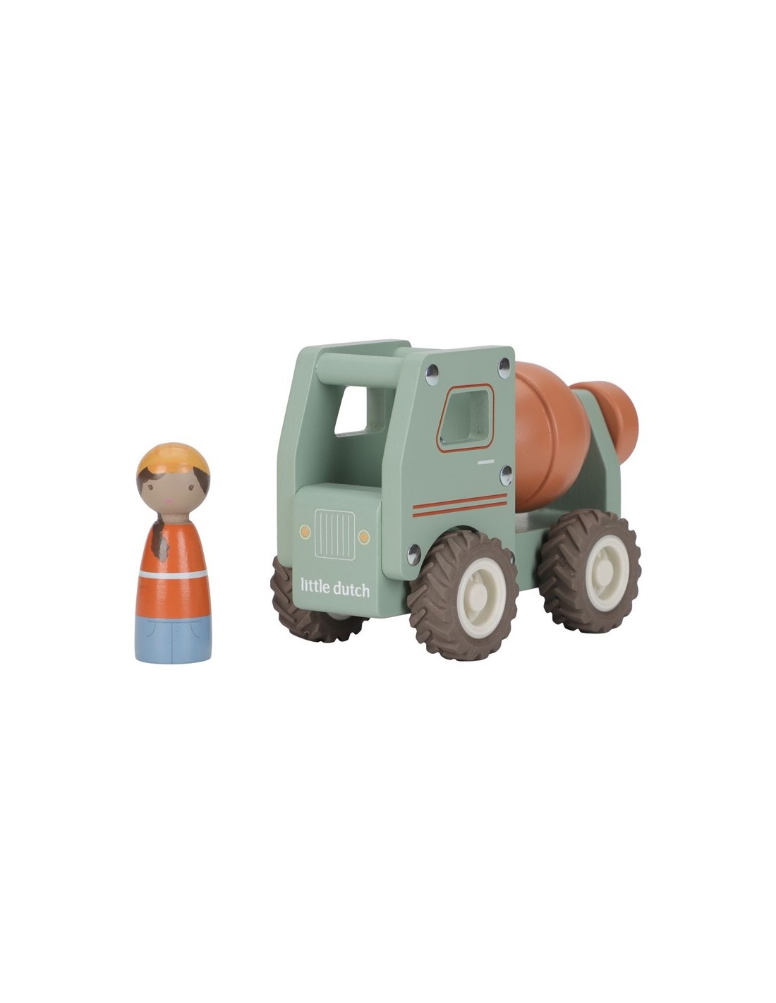 ¡Mezcla y construye! Este camión de cemento de madera gira su mezcladora mientras recorre la obra. La minihormigonera incluye un trabajador de construcción de madera y ruedas de goma para mayor comodidad al conducir. Conduce hasta la obra, vierte el hormigón y allana los caminos por completo. Combínalo con la excavadora y el camión dúmper de madera para una experiencia de construcción completa.