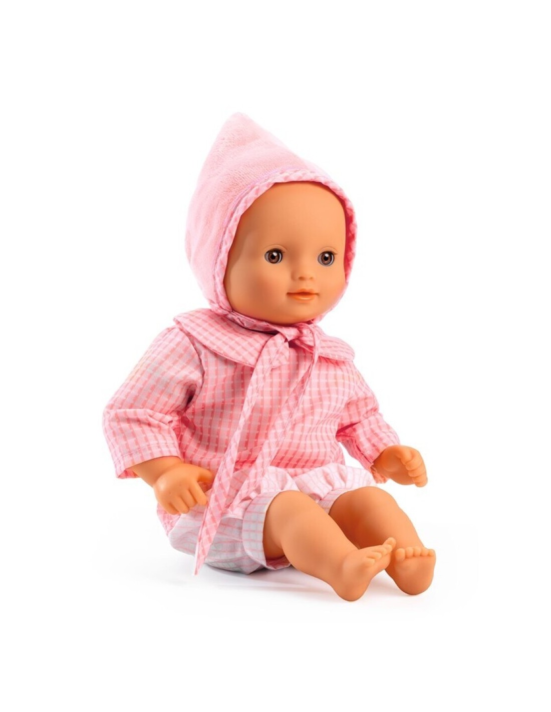 Rose es una muñeca bebé de la colección Pomea, pensada para acompañar a los peques en el juego de cuidado desde los primeros años. Con sus ojos marrones expresivos, su rostro dulce y su conjunto en tonos rosa suave, invita a recrear rutinas cotidianas llenas de afecto y ternura.