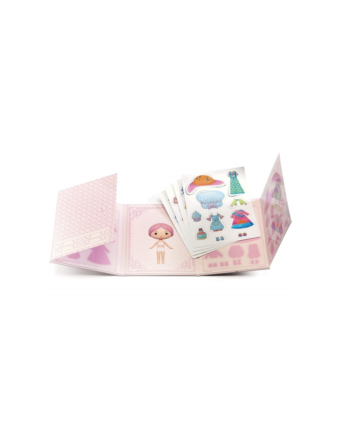 Con ilustraciones delicadas y un diseño cuidado, este set es perfecto para quienes disfrutan del universo Tinyly y del juego simbólico ligado a la moda y la fantasía.