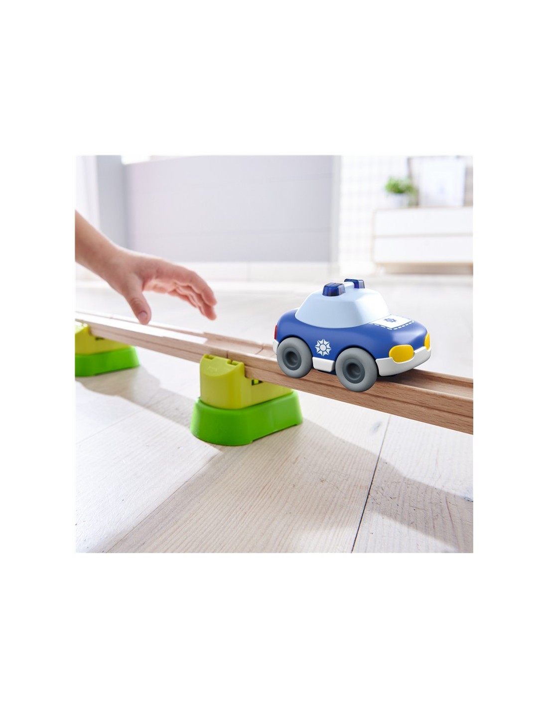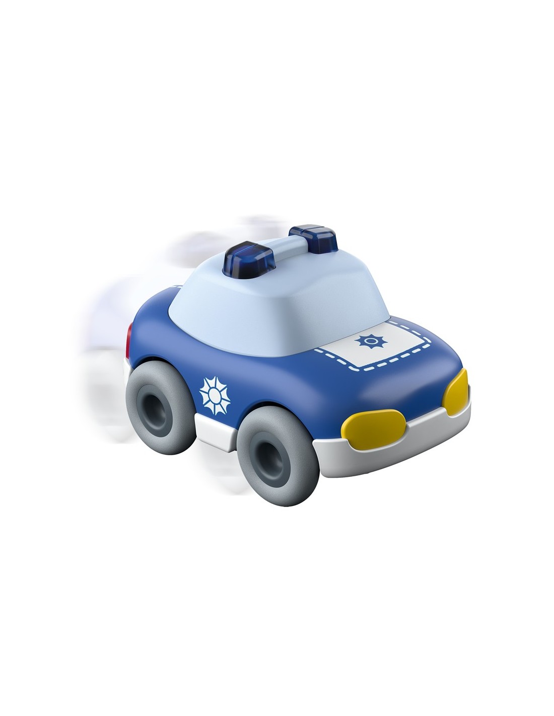 El coche de policía de la colección HABA Cars es un vehículo ideal para las primeras historias de juego simbólico. Su diseño compacto, con formas redondeadas y colores contrastados, está pensado para facilitar el agarre y el manejo por manos pequeñas desde edades tempranas.