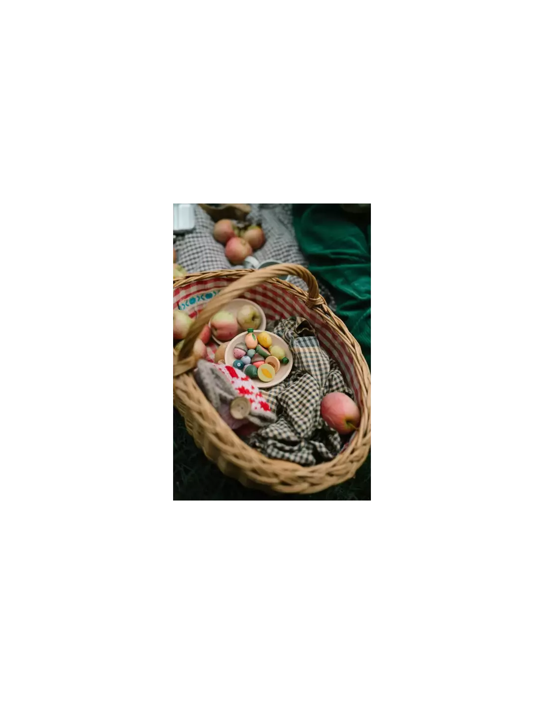 Gracias a su carácter abierto, estas piezas pueden convertirse en ingredientes para cocinar, productos de un pequeño mercado o elementos dentro de un mundo imaginario creado por los propios niños. También son ideales para combinar con cocinitas de juguete, tiendas o bandejas sensoriales.