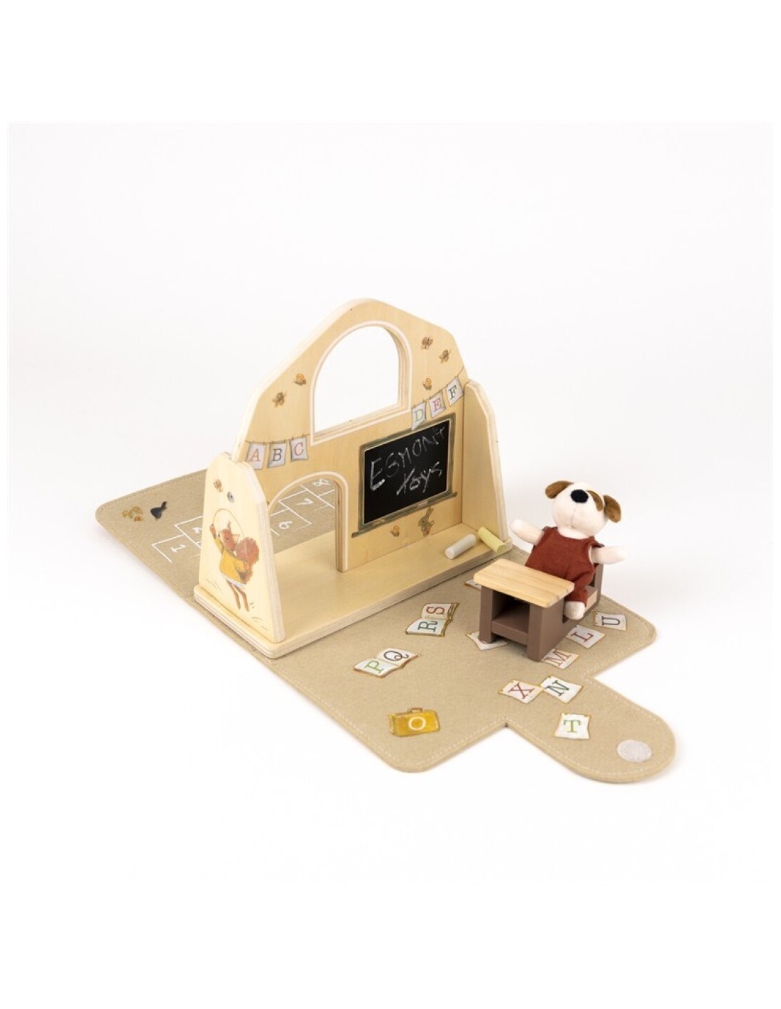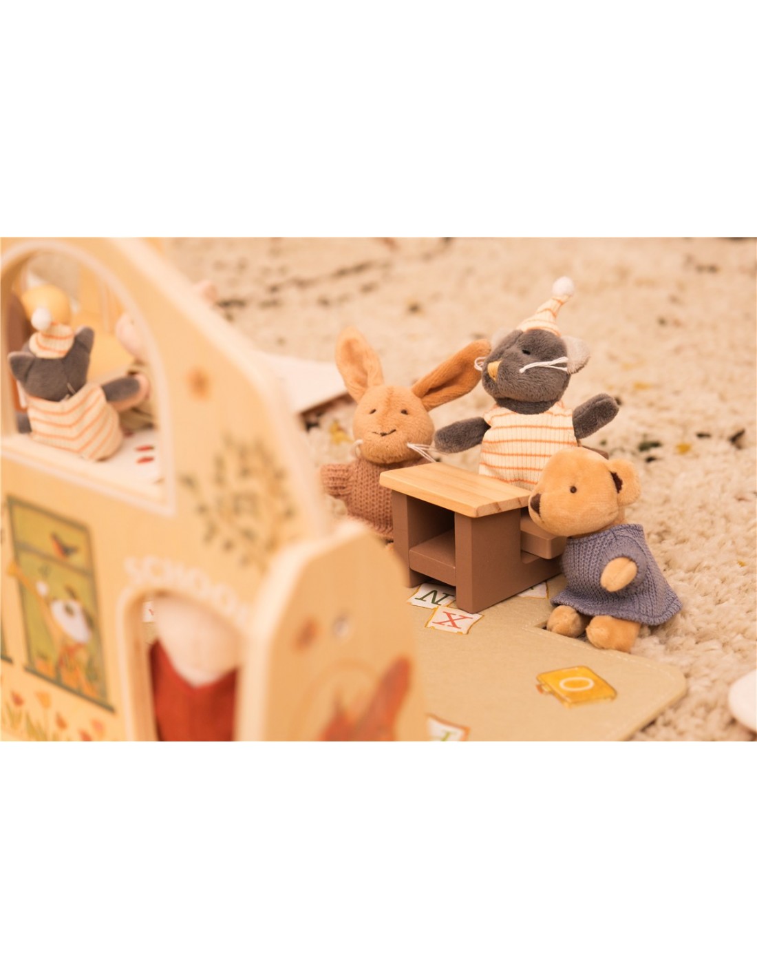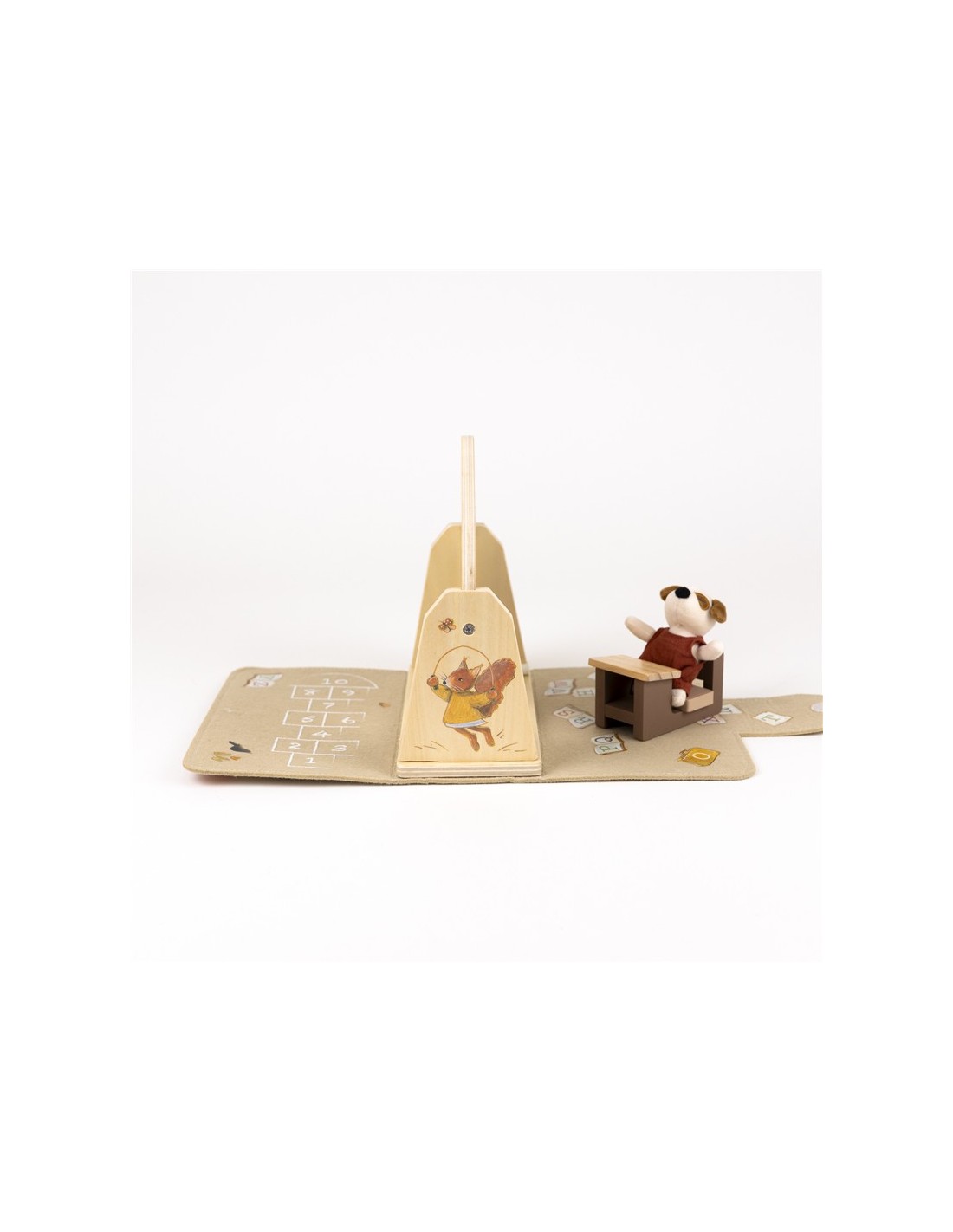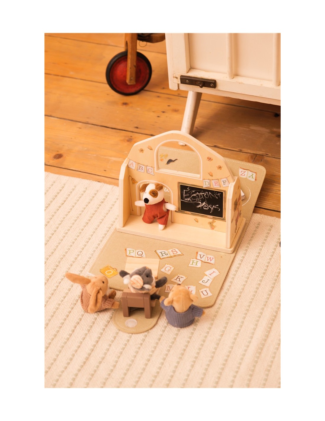 Este encantador colegio de madera invita a recrear historias del día a día: aprender, jugar, cantar o compartir momentos con los amigos. Su diseño cuidado y sus ilustraciones llenas de ternura crean un entorno cálido donde los pequeños personajes pueden reunirse, estudiar o divertirse en el recreo.
