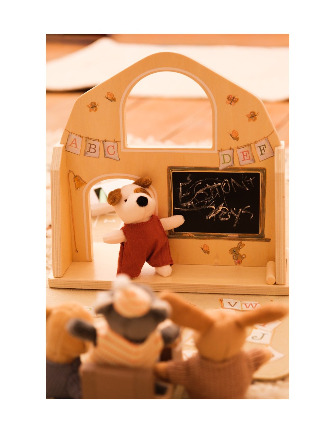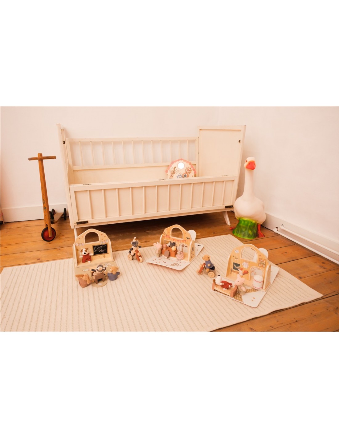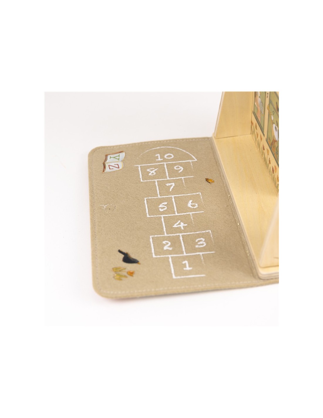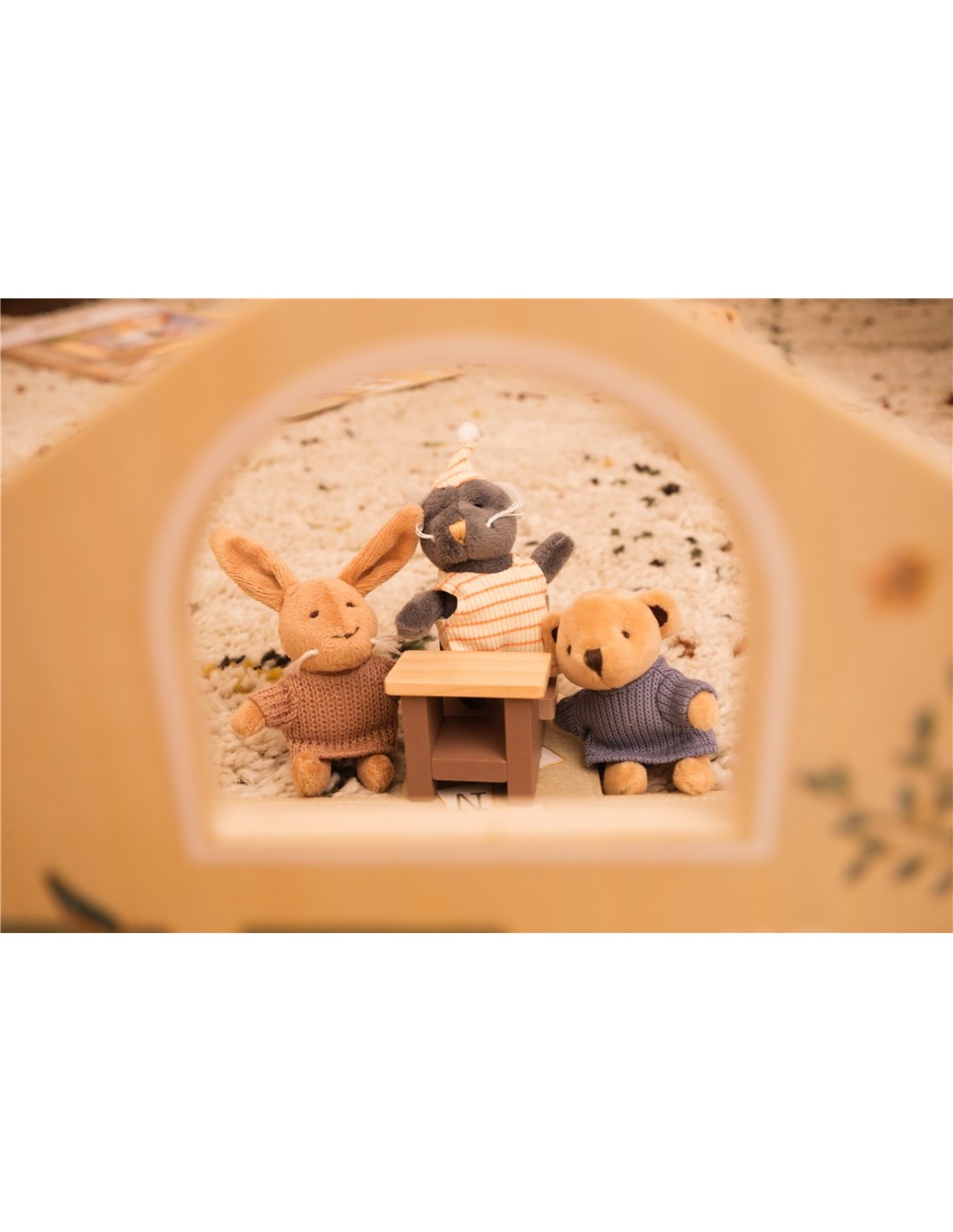 Este encantador colegio de madera invita a recrear historias del día a día: aprender, jugar, cantar o compartir momentos con los amigos. Su diseño cuidado y sus ilustraciones llenas de ternura crean un entorno cálido donde los pequeños personajes pueden reunirse, estudiar o divertirse en el recreo.