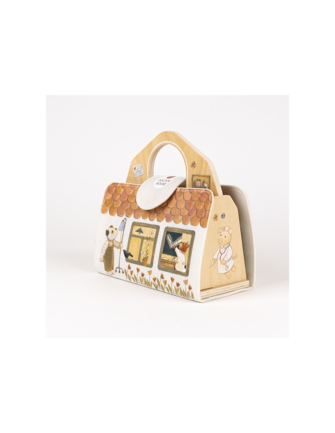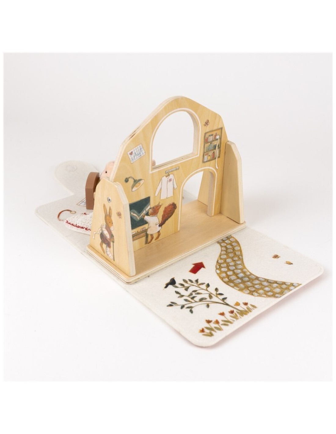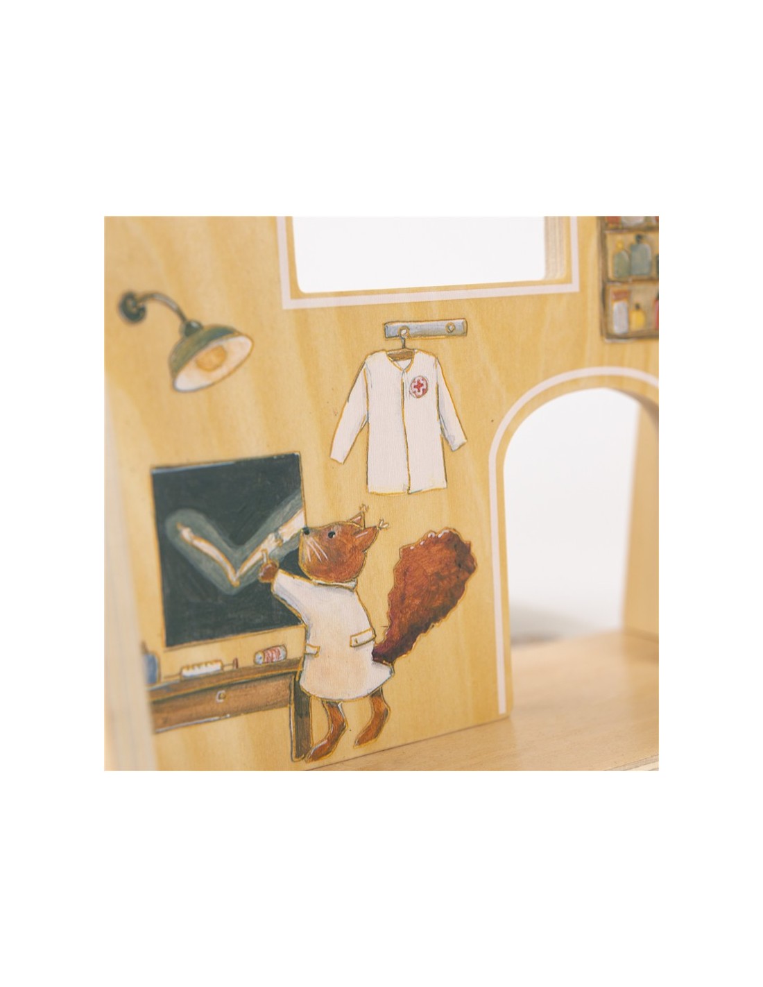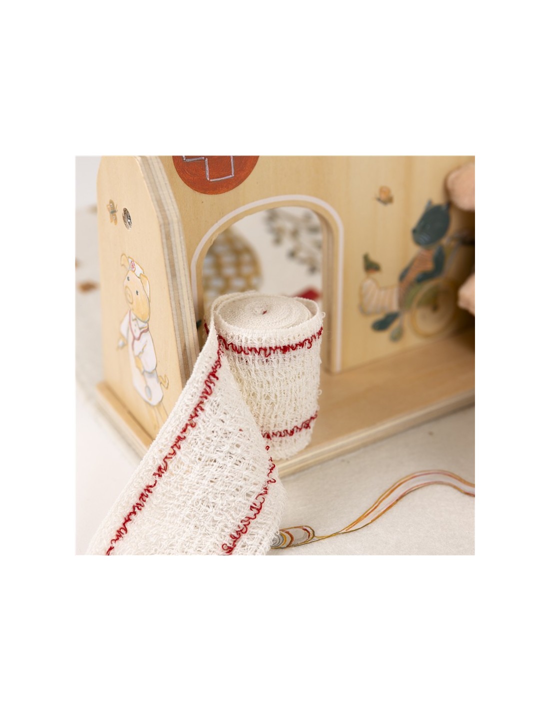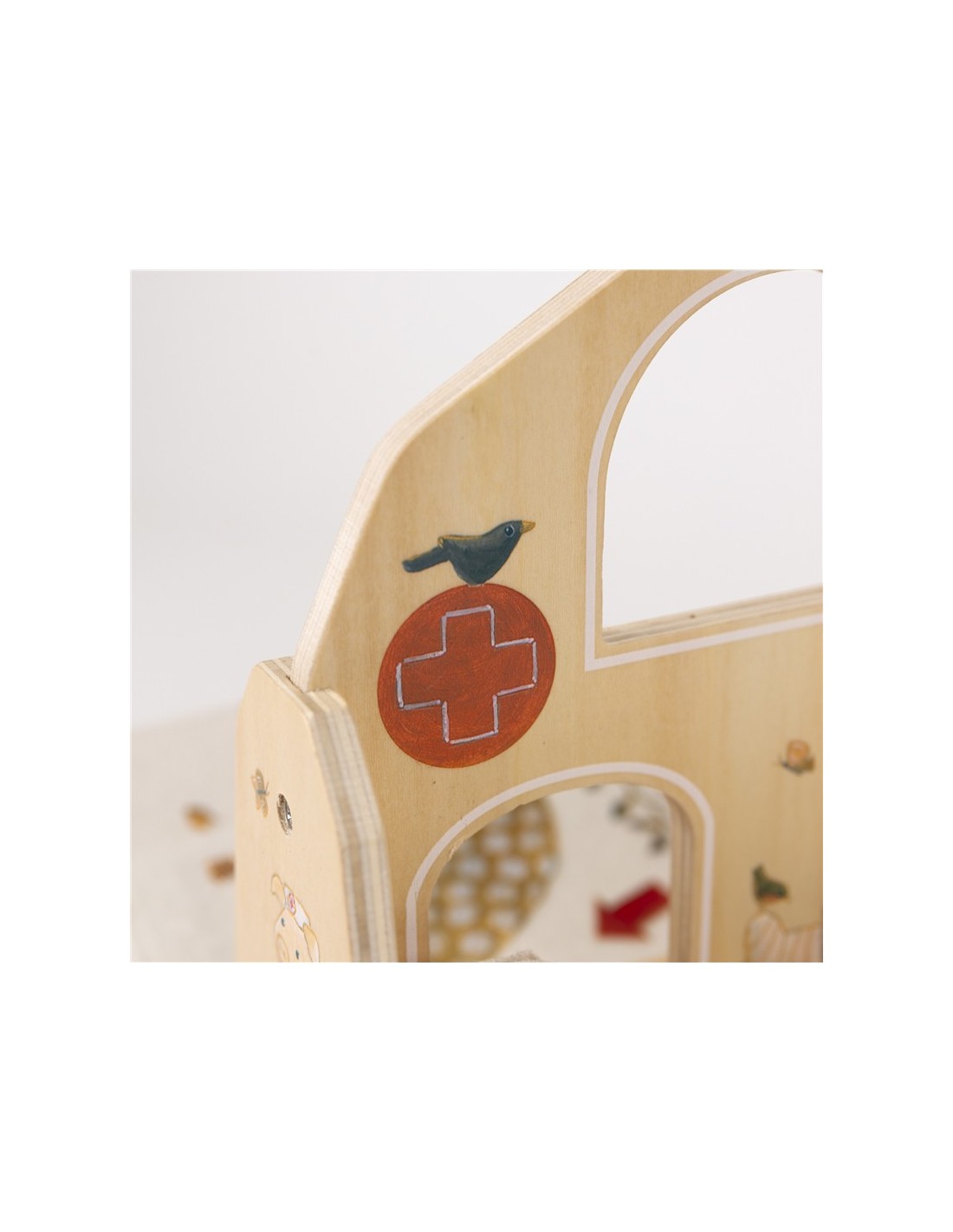 Este encantador hospital invita a recrear situaciones cotidianas como visitar al médico, cuidar a un amigo o ayudar a que alguien se sienta mejor. Con su camita y sus detalles ilustrados, se convierte en el lugar perfecto para inventar historias y fomentar el juego simbólico.