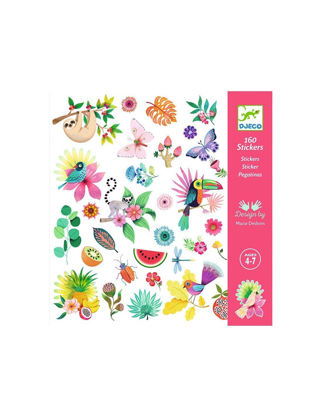 Precioso set con 160 pegatinas de coloridos elementos paradisíacos