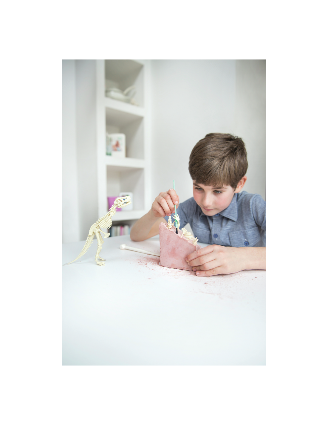 Con este set geológico, ¡los peques se sentirán como verdaderos paleontólogos! Los peques deberán extraer los huesos del esqueleto de un Brachiosaurus de la piedra y después podrán reconstruirlo, creando un esqueleto de 28cm de largo.