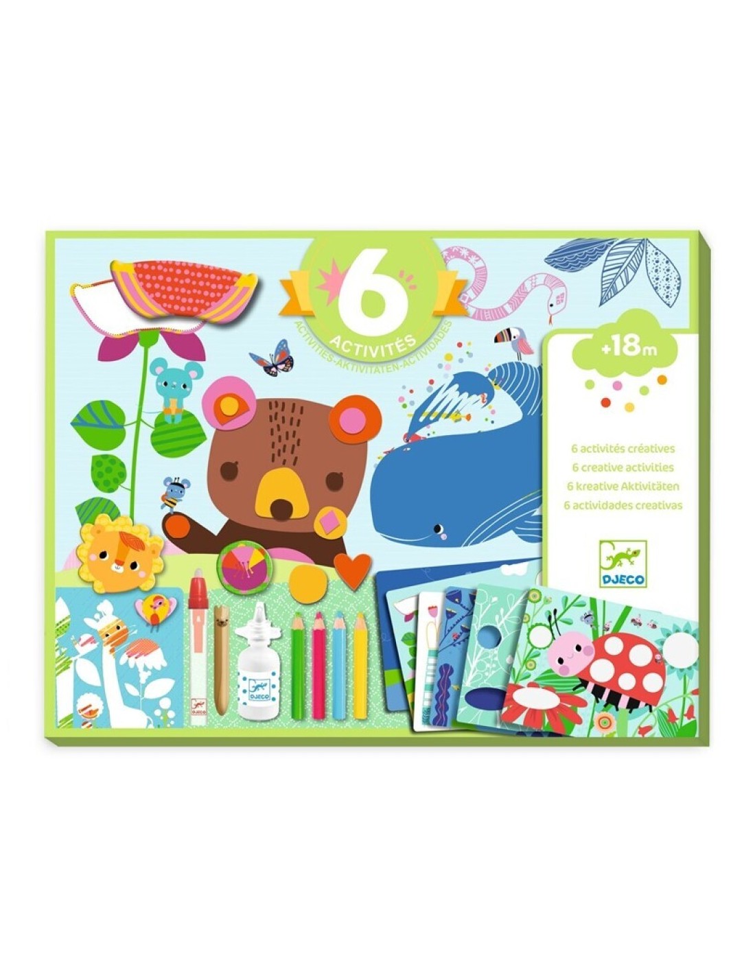 Un set creativo con 6 actividades diferentes diseñado para iniciar a los más pequeños (desde 18 meses) en el mundo de las manualidades. Crea con collage de cartón, fieltro, pintura con agua, tarjetas para rascar y mucho más. Incluye todo lo necesario: materiales y guía paso a paso. Estimula la imaginación, la destreza y la atención mientras se divierten con ratoncitos y sus simpáticos amigos. Tamaño compacto (aprox. 30 × 23 × 6 cm) y fabricado con materiales certificados y seguros. Un regalo ideal para bebés y niños pequeños.