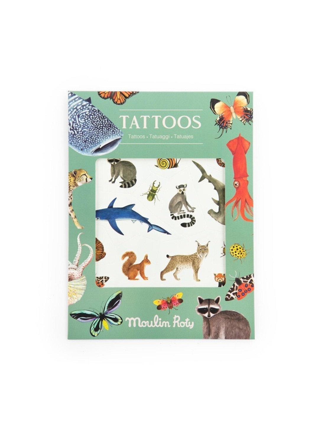 Los Tatuajes Tout autour du monde de Moulin Roty están llenos de pequeños tesoros ilustrados: animales de distintos continentes, plantas exóticas, motivos tribales, colores suaves y detalles que invitan a soñar con viajes y descubrimientos.