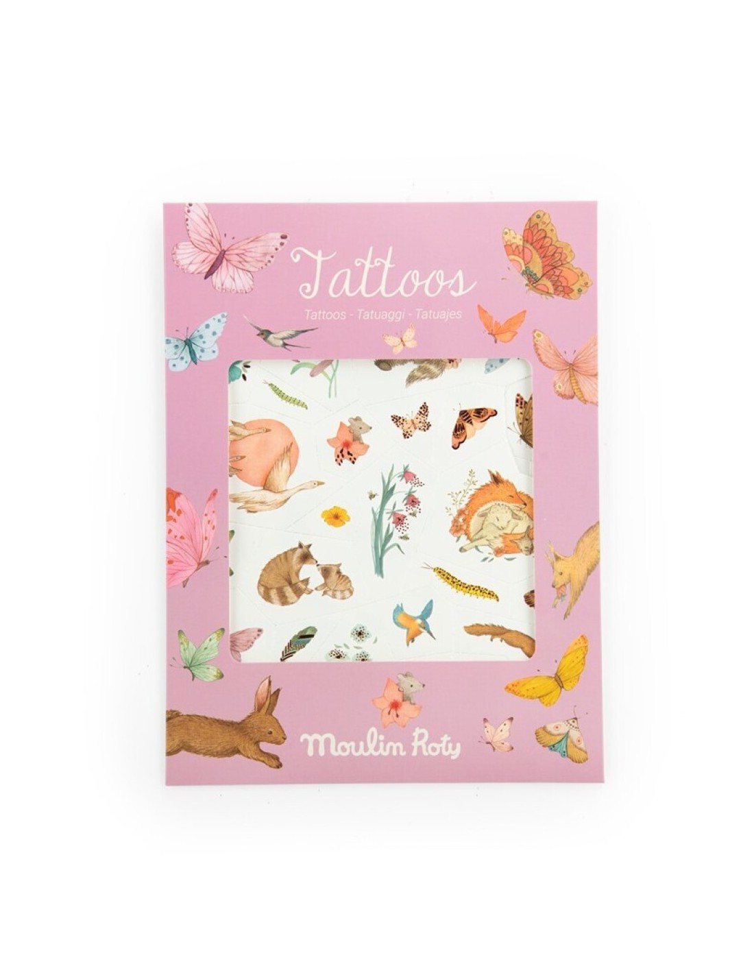 Flores, mariposas, colores suaves y un aire de poesía… así son los Tatuajes Rosalies de Moulin Roty. Dos láminas llenas de ilustraciones delicadas que parecen salidas de un cuento: bailarinas florales, elementos botánicos y pequeños detalles que convierten la piel en un jardín mágico.