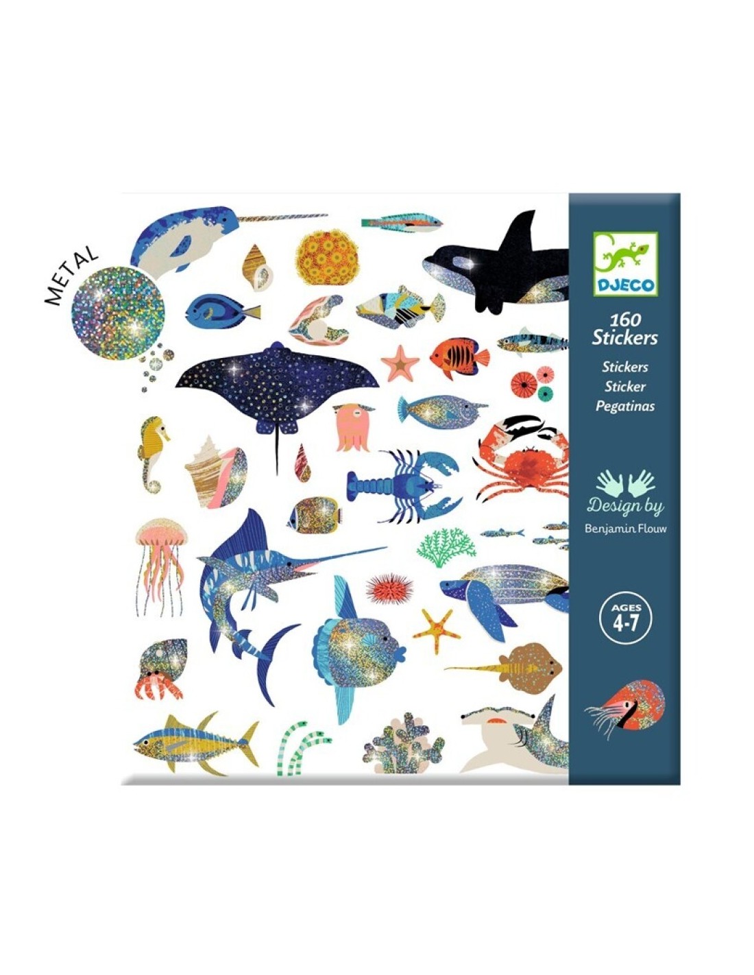 Incluye 160 pegatinas con acabado metalizado que aportan textura visual y un toque mágico a cualquier creación. Ideales para decorar cuadernos, cartas, dibujos, manualidades o crear pequeñas escenas marinas.