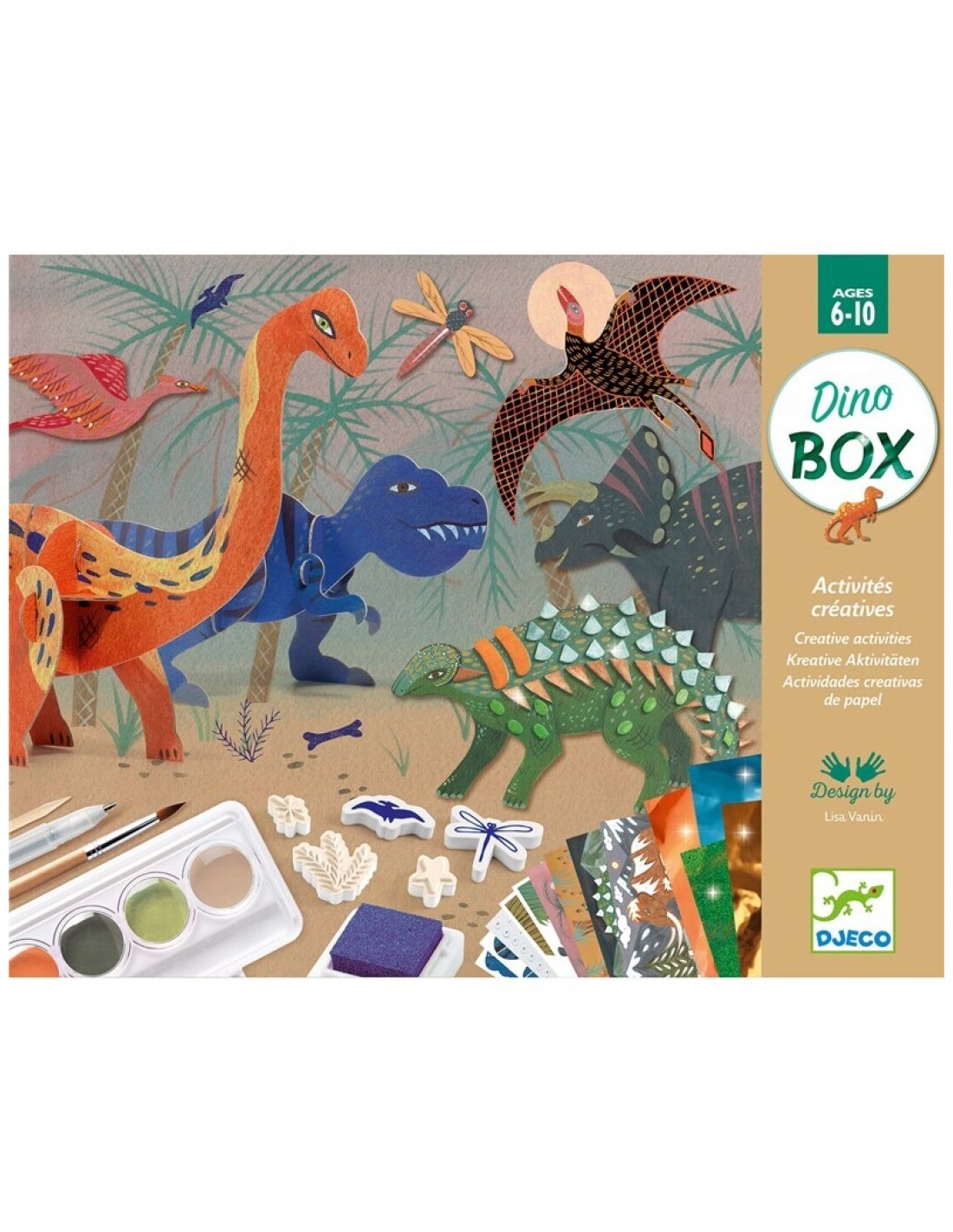 La Dino Box es una propuesta creativa súper completa que invita a los peques a sumergirse en el fascinante mundo de los dinosaurios a través de diferentes actividades manuales.