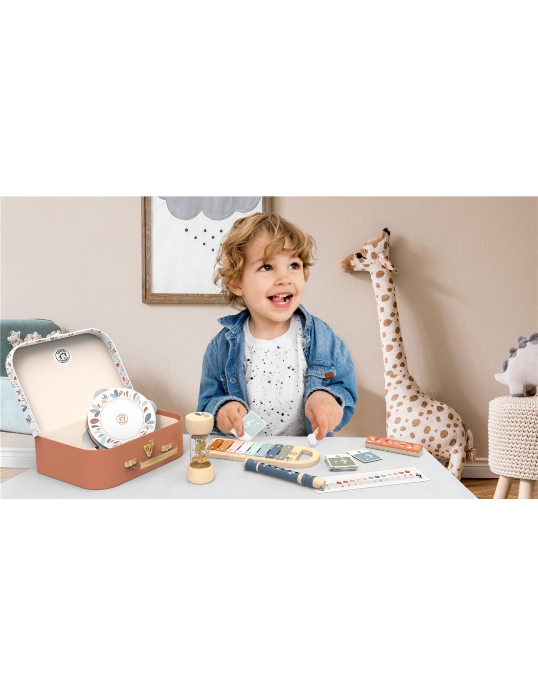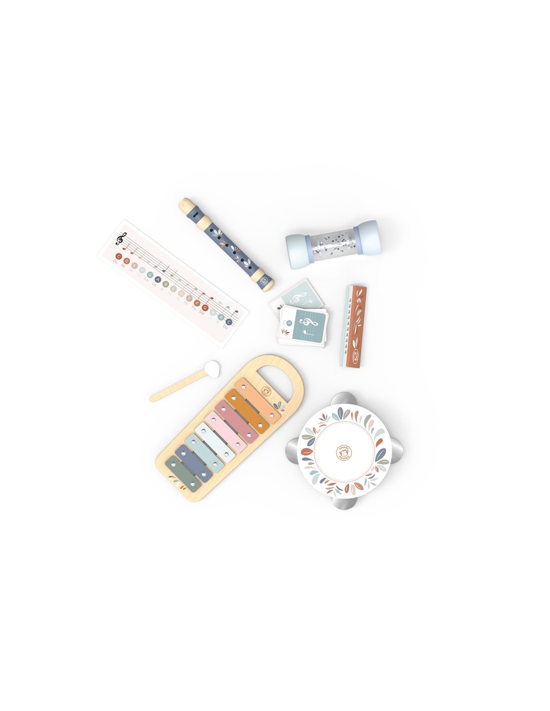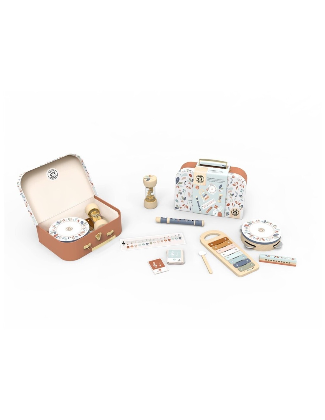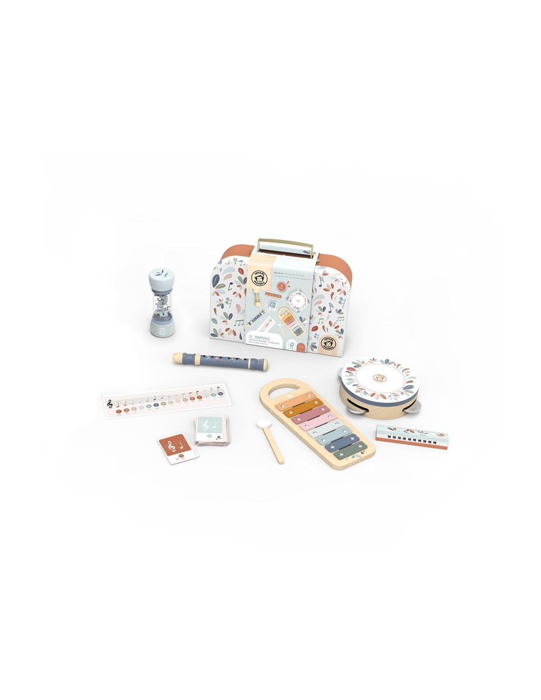 Este conjunto musical reúne 6 instrumentos adaptados a manos pequeñas para que los peques descubran el ritmo, el sonido y la armonía jugando. Incluye diferentes propuestas sonoras que permiten experimentar con percusión, melodía y coordinación.