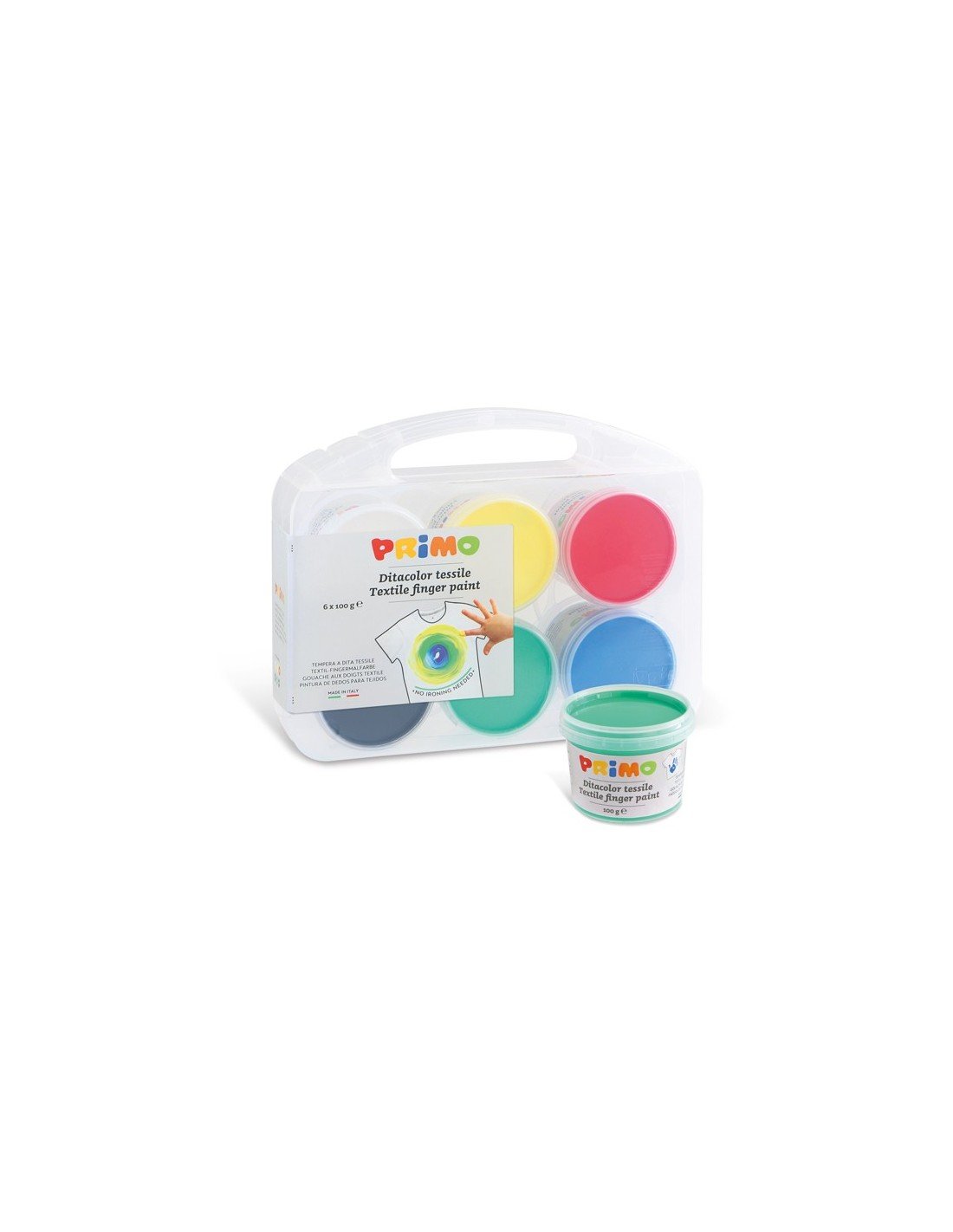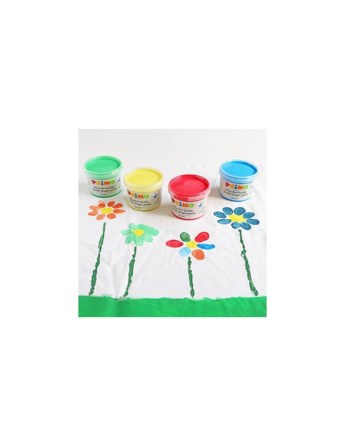 Pintura de dedos textil lista para usar en bote, en una gama de seis colores, en estuche multiusos. Dermatológicamente Comprobado. Apto para el contacto con la piel, es ideal para niños pequeños y su fórmula es específica para la aplicación manual sobre diferentes textiles. Suave y agradable al tacto, se puede aplicar fácilmente y una vez que se seca conserva colores vivos y brillantes sin rayas, incluso después de varias capas. Durante el uso, recomendamos proteger su ropa y la superficie de trabajo. No es necesario fijarlo sobre el tejido pero es muy importante dejarlo secar al menos 24 horas a temperaturas entre 18 y 25 °C. Planchar del revés después de poner una hoja de papel de hornear sobre la superficie pintada y un trozo de tela entre la plancha y la tela para evitar manchas en la plancha. Lavar a 30°. Las manchas deben eliminarse inmediatamente siguiendo las instrucciones proporcionadas.