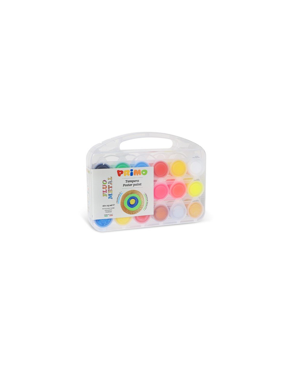 Estuche multiusos con pintura premezclada fluorescente, metalizada y clásica para carteles de la mejor calidad en una gama de 6 colores cada uno. Este set permite experimentar con tres familias diferentes de pinturas que se completan entre sí. Todas las pinturas se pueden utilizar sobre diferentes tipos de superficies como papel, cartón, madera, textiles, vidrio, terracota, metal y plástico. Se pueden fijar con algún barniz u otro producto adecuado. Las manchas deben eliminarse siguiendo las instrucciones.