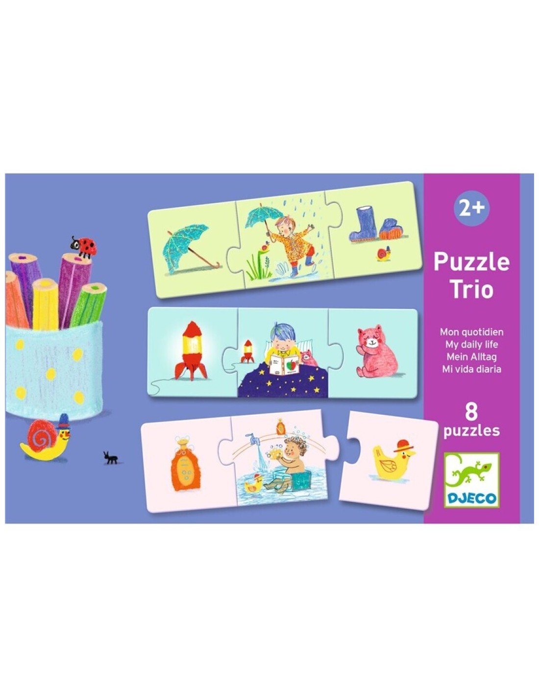 Este divertido y educativo set incluye tres puzzles diseñados especialmente para acompañar a los más pequeños en la adquisición de habilidades esenciales de su vida diaria. El Puzzle Trío “Educativos Mi vida diaria” combina aprendizaje y diversión, ayudando a los niños a reconocer y organizar actividades cotidianas mientras desarrollan su motricidad fina, capacidad de observación y resolución de problemas.
