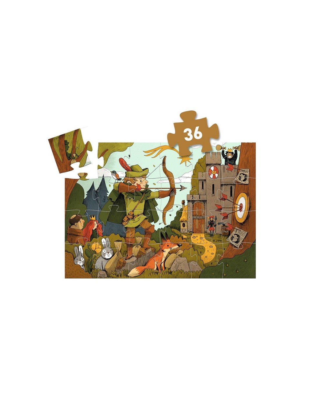Embárcate en una aventura épica con el Puzzle Silueta Robin Hood de Djeco. Este colorido rompecabezas de 36 piezas presenta a Robin Hood en una escena llena de acción y valentía, ofreciendo a los niños una experiencia de juego envolvente que estimula su imaginación y habilidades cognitivas.