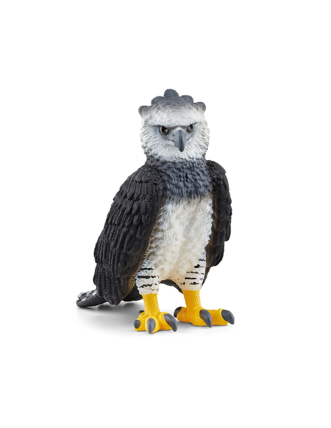 Mira atentamente con sus agudos ojos y tiene el copete de la nuca levantado en señal de alerta. Recorre las selvas tropicales de Sudamérica en busca de presas. No se le escapa ningún movimiento, así que no podrás ganarle si jugáis al escondite.La Harpía tiene un aspecto impresionante con su plumaje oscuro y las plumas rayadas de las patas. Pero ándate con ojo: ¡el copete de la nuca está levantado! Eso significa que la gran rapaz está especialmente alerta. ¿Qué habrá descubierto? Tal vez esté a punto de salir de caza. ¡Con sus poderosas garras, puede matar hasta monos y llevárselos consigo! Sin embargo, confía en sus amigos y deja que la lleven en la mano e incluso que la alimenten.