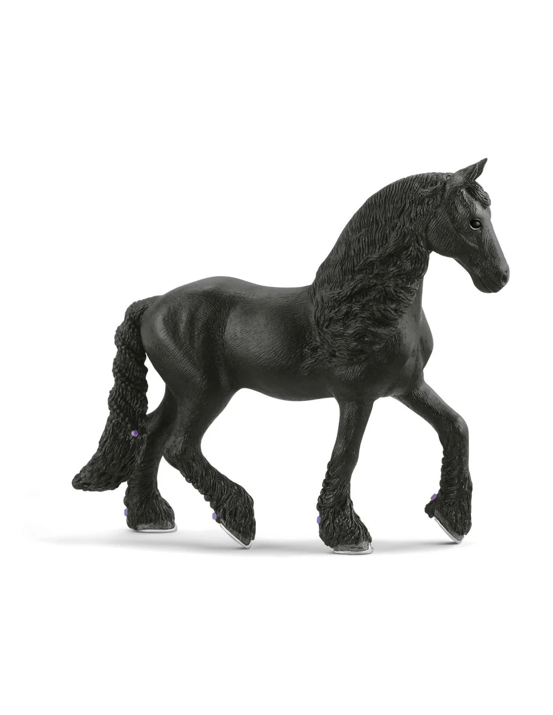 Los frisones reciben su nombre de la región neerlandesa de la que proceden, Frisia, y constituyen una de las razas de caballos más antiguas de Europa. Cuentan con un característico pelaje de color negro, una fastuosa crin y una hermosa cola. Otra excepcionalidad de los frisones es el pelaje largo de sus patas. Los espolones de la yegua frisona schleich® HORSE CLUB están dotados de un espeso pelaje ondulado que la convierte en una pieza única de coleccionista.
