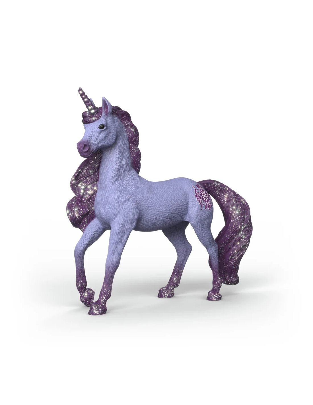 Orchid combina a la perfección con los miembros de su familia ya mostrados: la dulce yegua unicornio Peach (70860) y el encantador potro unicornio Iris (70861). La relación de color entre el semental y el potro es inconfundible. El semental Orchid y el potro Iris comparten el mismo color púrpura resplandeciente, una conexión encantadora que revela su parentesco mágico a primera vista.