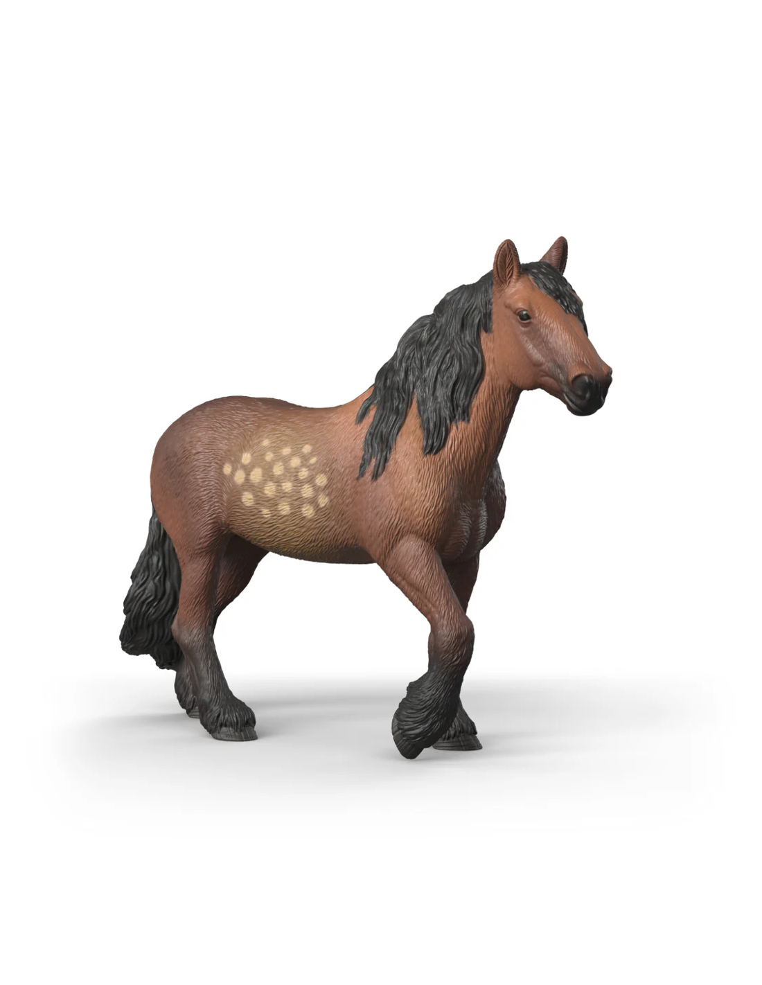 Lentamente, la yegua de sangre fría del norte de Suecia pone una pezuña delante de la otra. El viento silba a través de los campos, golpeando su cola y barriendo sus crines. Pero ella no se amilana. Su espeso pelaje la protege perfectamente del frío, que es exactamente para lo que está hecha. Potente y tranquila, ayuda en el trabajo de campo. ¿Y cuando no es necesaria su ayuda? Entonces se queda relajada en el establo y se deja mimar. Es un hombro fuerte en el que apoyarse, ¡con corazón y pezuñas!